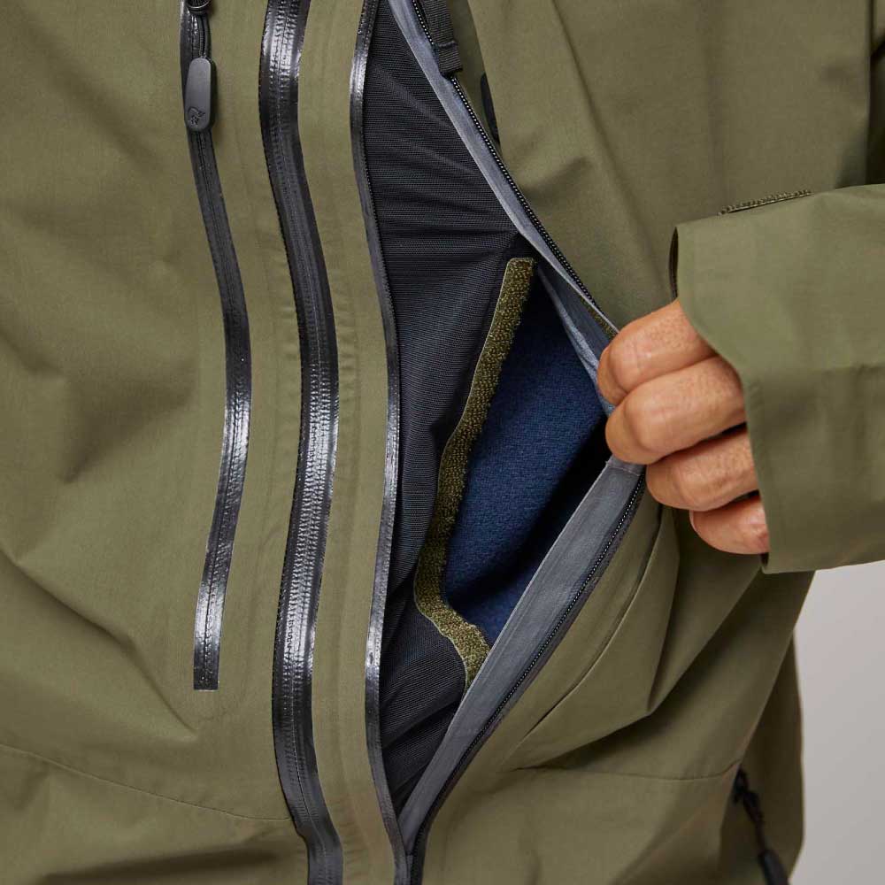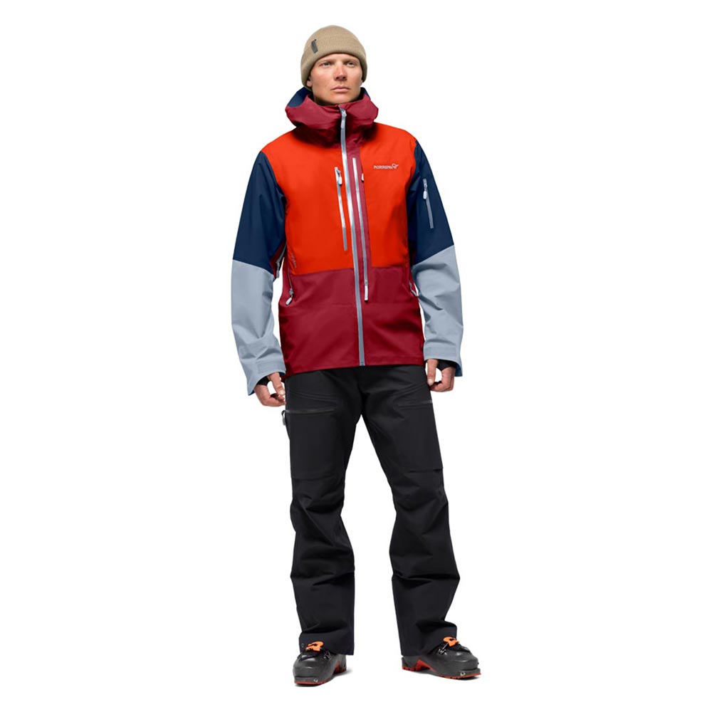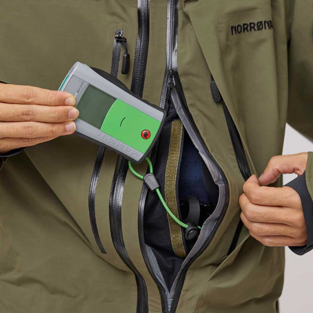 Norr?naスノーカテゴリーのフラッグシップ。多くの滑り手たちが頼りにしてきたビッグマウンテンジャケットが2020年にフルリニューアルされ、販売店、リペア部門、アンバサダーという各部門から集約したフィードバックが息づいています。素材は進化したゴアテックス® プロから、高い透湿性を追求したモストブリーザブルテクノロジーを採用。リサイクルナイロン100%の表地70デニールにアップし、また、首回りのシームテープ幅を広げて耐久性を向上させました。高い防風性と防水透湿性に加えて、ブルーサイン認証済みのC6レベルのDWR処理で高い撥水性を維持しています。タフなつくりながらも軽やかに動けるパタンニングによって、ライディングの自由度を損いません。開きやすいよう斜めにセットされた脇下ベンチレーターに加え、フロントファスナーに沿って開く胸のメッシュベンチレーターは、バックパックを背負ったままでの換気に効果を発揮します。フロントファスナーを開かなくても素早くアバランチビーコンを取り出せるアクセスホールや、より使いやすく変更されたカフデザインなど、バックカントリーの過酷な環境でも使いやすいNorr?naらしいディテールも健在です。