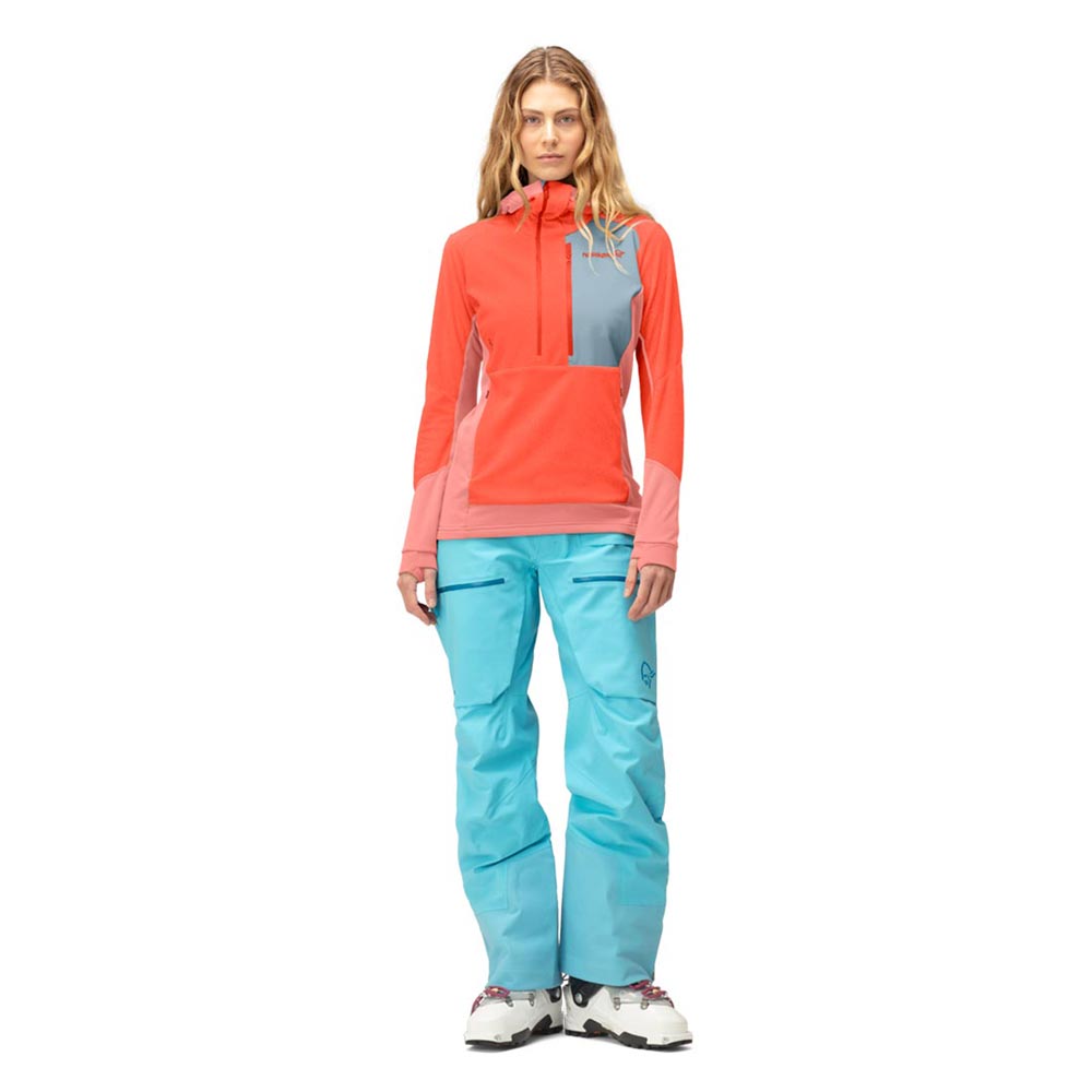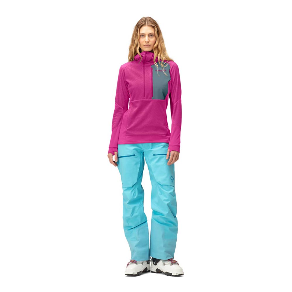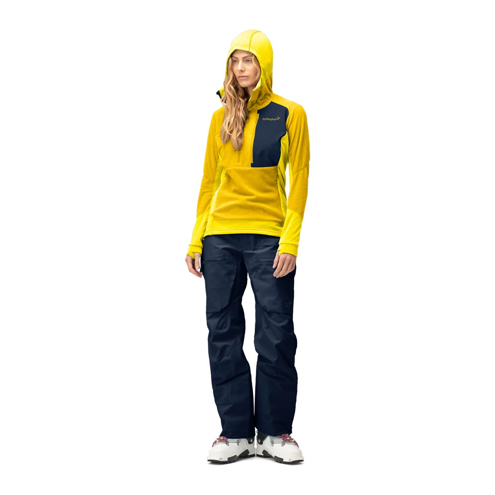 汎用性の高いミッドレイヤーです。アクティブに動いてもオーバーヒートしないように体幹を温めます。スキー/スノーボードはもちろん、登山、トレッキングといった様々なアウトドアアクティビティでも活躍します。最適な保温性と快適性を提供するために、各部位に異なったPolartec®ファブリックを配置して作られています。背中、お腹周り、脇の下、フード上部には優れた吸湿速乾性と収納性を併せ持つPolartec® Powe Grid™ 186g/m2 を使用し、活動中に蓄積された余分な体温を簡単に放出します。肩、首、袖には、優れた保温性と通気性を併せ持つPolartec® Thermal Pro® 193g/m2 を使用し快適な着心地を提供します。