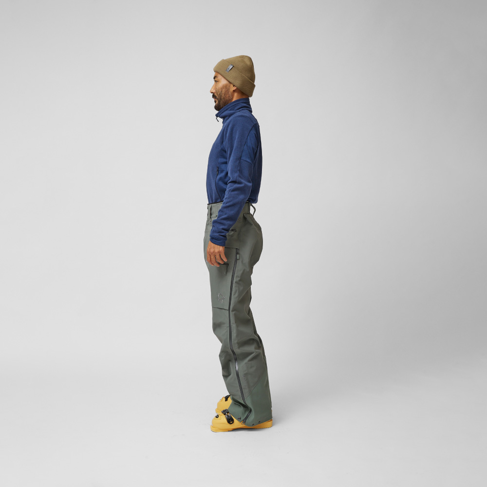 Norr?naスノーカテゴリーを代表するアイコニックなライディングパンツが、数年間のフィードバックを得てさらに成熟しました。素材は新しくなったゴアテックス® プロで、より堅牢で耐久性の高いモストラギッドテクノロジーを採用。表地は高い防風性と防水透湿性に加えて、ブルーサイン認証済みのC6レベルのDWR処理を施した200デニールのリサイクルナイロン。タイトなツリーランから岩に囲まれたシュート、ラフなアイスバーンを攻めても安心です。どこでも違和感なく穿けるレギュラーフィットで、タフな生地ながら、精度の高いパターンニングによって重さを感じず、脚の上げ下げを妨げません。ウエストはベルクロでアジャストでき、スノーゲイターを内蔵した裾まわりは強固なベクトランファイバーによるエッジガードで周囲一周を補強。また、絞り幅を調整できるスナップボタン付きで、スノーシューズに履き替えたときも裾の引きずりを防ぎます。別売りのビブはファスナーで着脱できます。