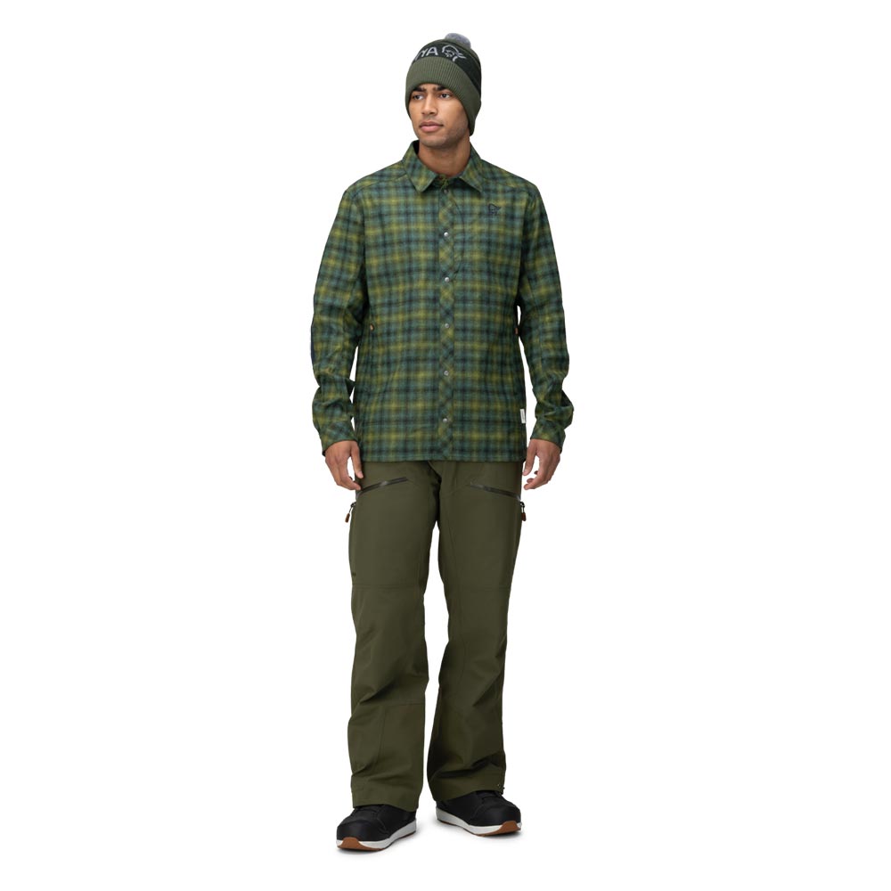 長い時間をかけてアンバサダーによりテストされたウールシャツです。丈夫で冷えにくいリサイクルウールを多く含むこのジャケットは、優れた中間着としての機能を持ちがら普段着としても街に溶け込みます。肘、袖口と襟の裏にはコーデュロイを用いて補強し、肩周りの裏にはナイロンを配して摩擦を少なくしました。腹部にはジッパー付きハンドウォームポケット、襟を立ててボタンで締めると冷気の侵入を防ぐことができます。