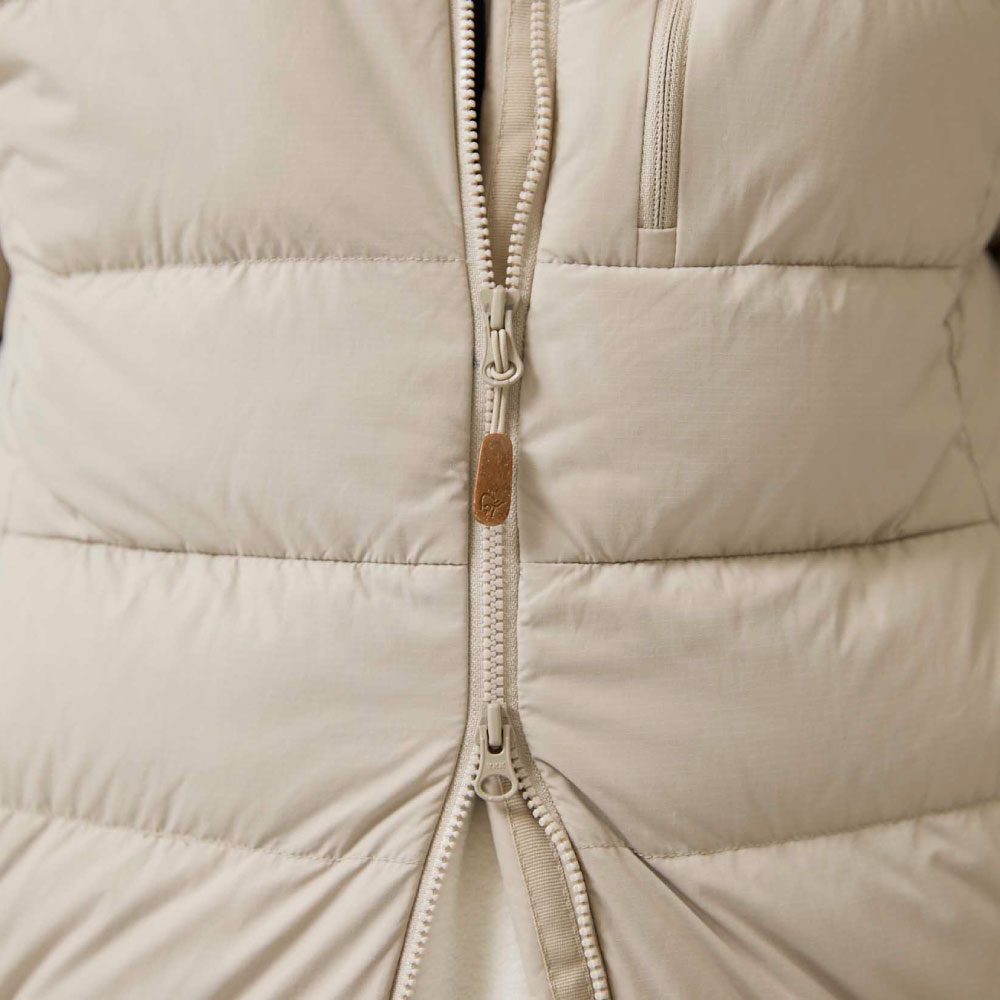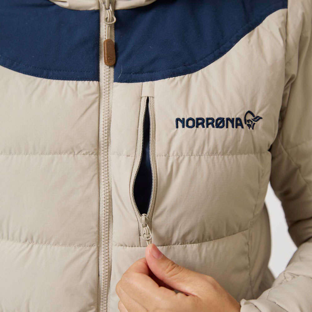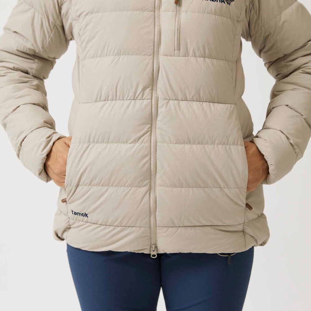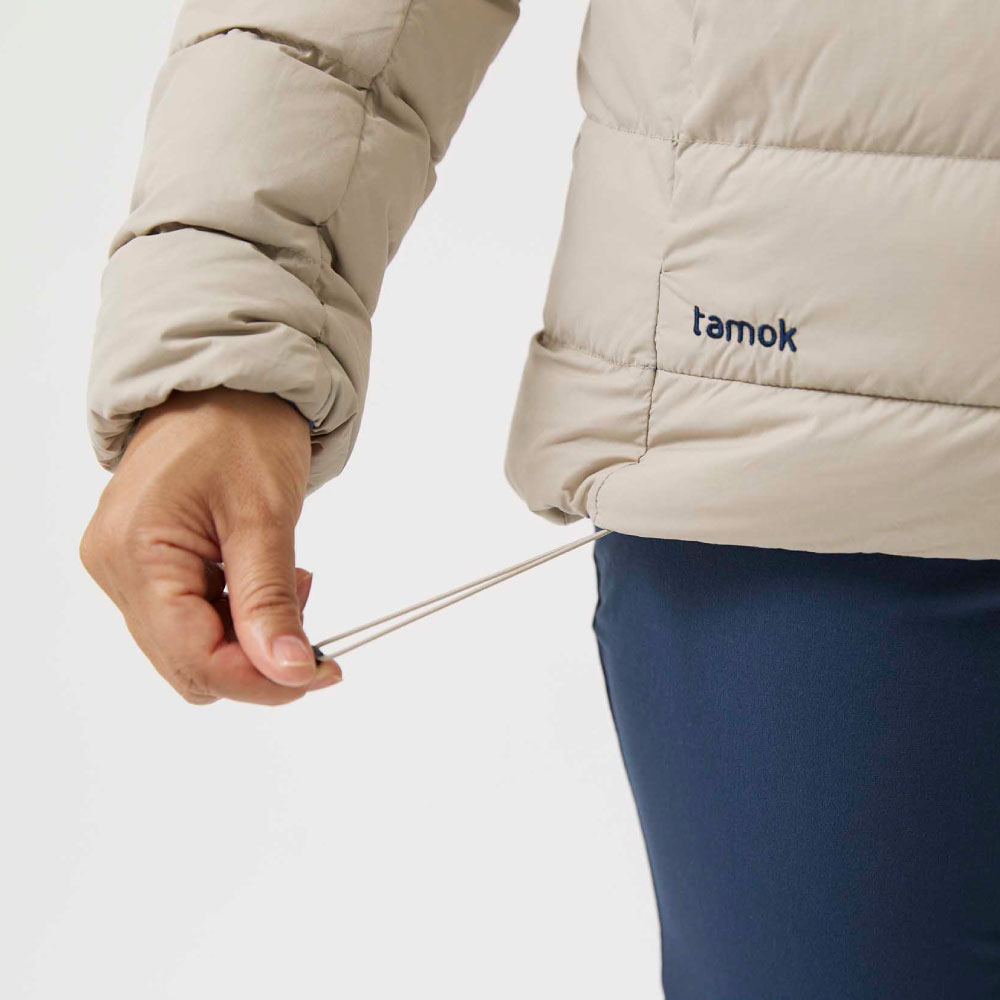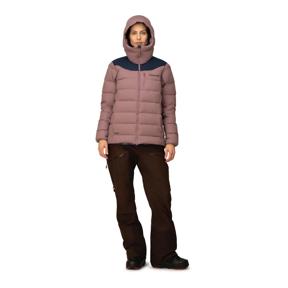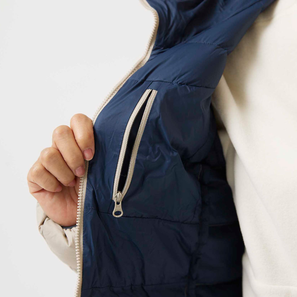 表地が45デニール、裏地が20デニールのリサイクルナイロンで作られた耐久性の高いダウジャケットです。ショルダーにはさらに補強が施され、シェルの上に着て、バックカントリーやトリッキーな森林を滑り抜けることも可能です。750フィルパワーのダックダウンが200g/mm (Men’s Lサイズ) & 180g/mm (Women’s Mサイズ) が包入され、柔らかい裏地付きのハンドウォーマーポケット、胸部にナポレオンポケット、ヘルメット着用を考慮した大きめのフードを配しています。