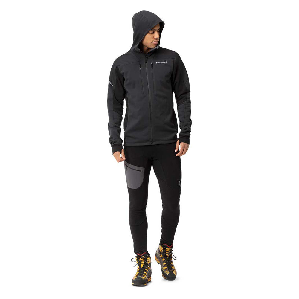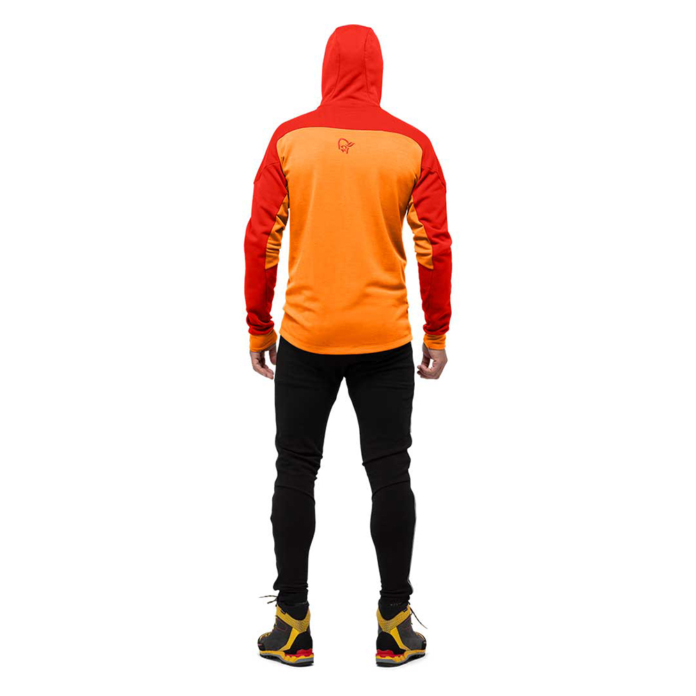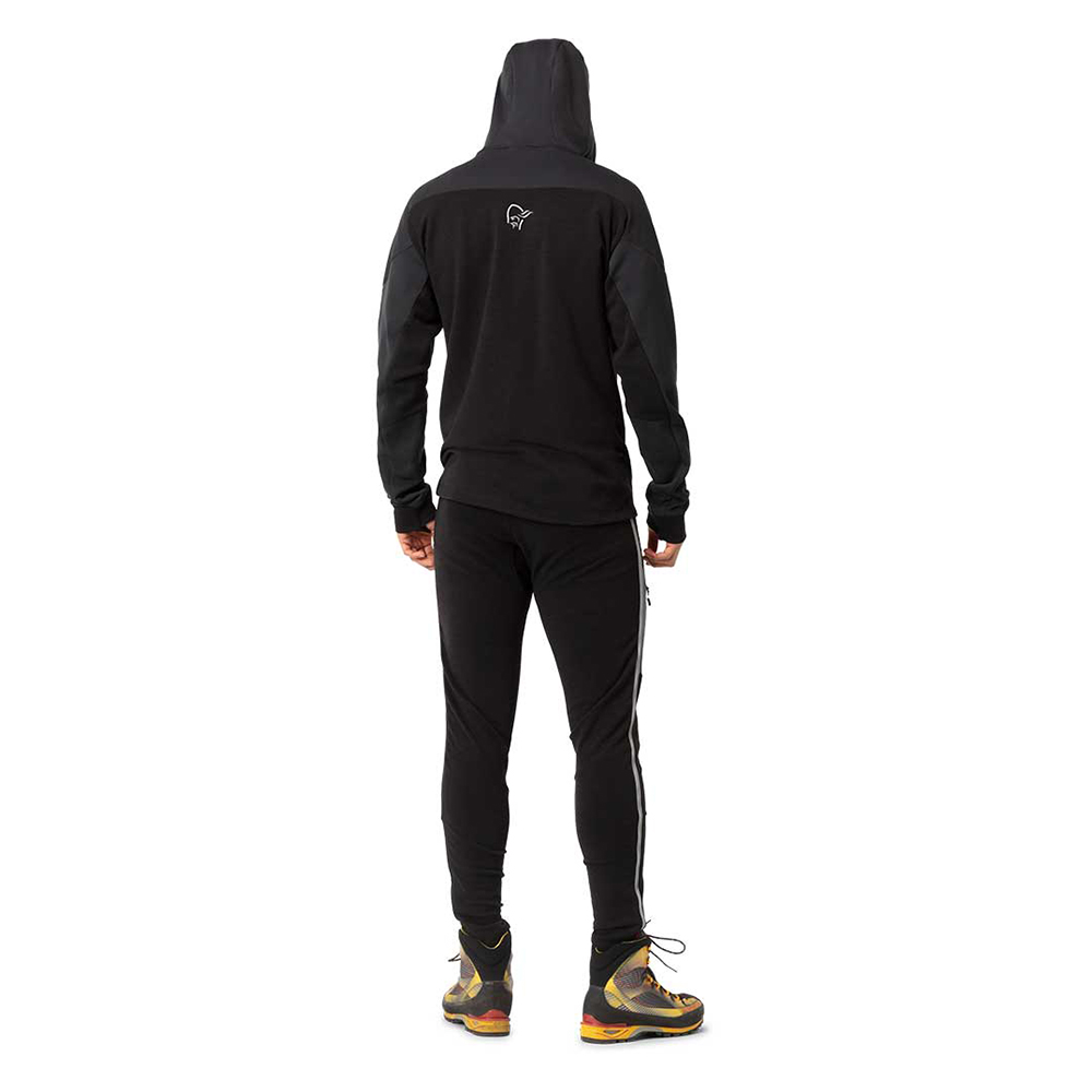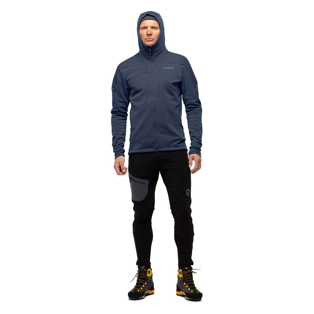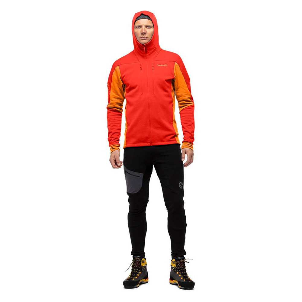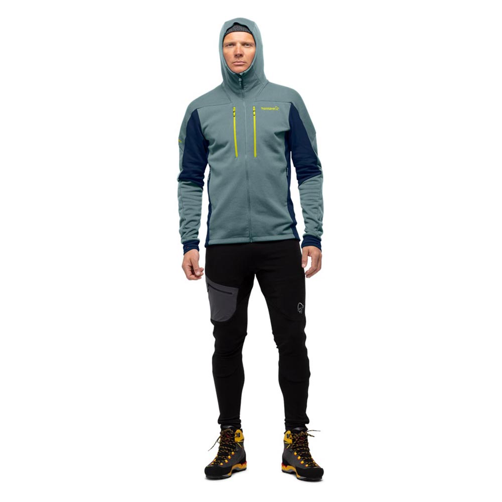 ポリエステル/ウール混紡とPowerstretch Proを適所にマッピングしたユニークな フードジャケットです。背面や腕下、脇下のポリエステル/ウールは濡れても 暖かく保ち、臭いを防ぎ、その他の箇所はPowerstretch Proを用いて耐久性と 優れた伸縮性を持たせています。手首にはサムホールを配し、フードはクライミングヘルメットの下にフィットする厚みとなっています。