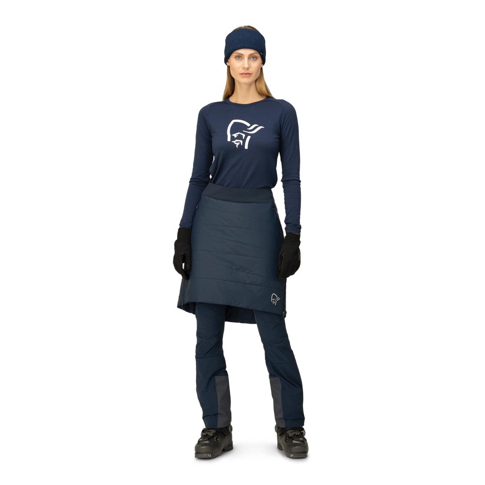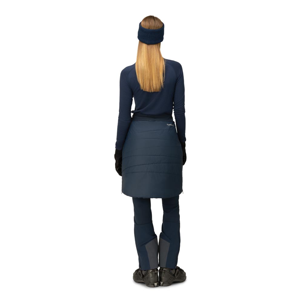 登山、スキーツアー、キャンプなどの休憩時に、ブーツを脱がずに簡単に腰回りを暖めることができる化繊中綿入りジップオンスカートです。表地は軽量な20デニールのリサイクルナイロン製ダウンプルーフ素材を使用し、冷たい風を遮断。DWR(耐久撥水)加工で中綿の水濡れを防ぎます。化繊中綿は湿気を含んでも保温性を維持し、軽さとコンパクト性が高く、バックパックのなかで場所を取りません。スカートの前半分には40g/m²の中綿で余分なかさ張りを抑え、後ろ半分には中綿80g/m²の厚みによって座った時に地面や岩からの冷えを防ぎます。左サイドはフルレングスのジッパーで着脱は容易、右サイドはマチ付きスリットで足上げを容易にしています。寒い季節の登山では山小屋やテントサイトで重宝し、秋から冬のキャンプでは終日活躍してくれます。