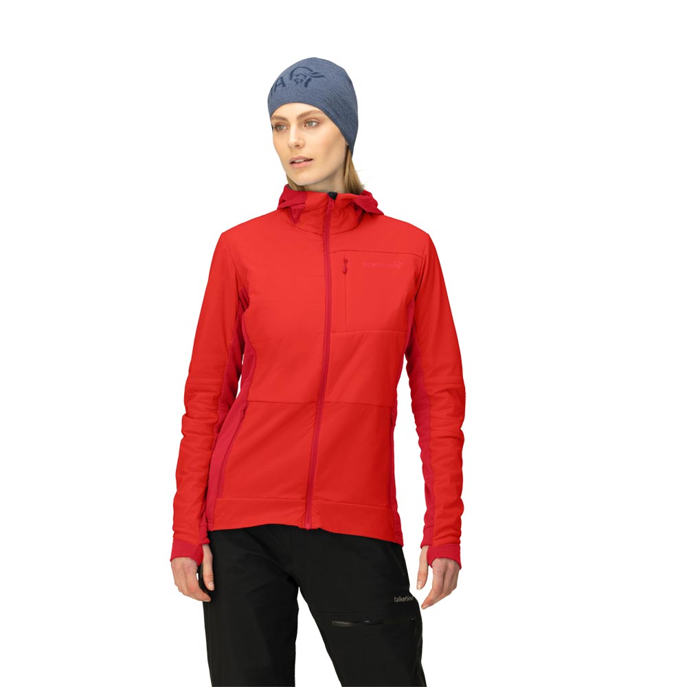 機能性の異なる3つの素材を適材適所にマッピングした、ハイブリッドなアクティブインサレーションです。表地は軽量で通気性のある20デニールのストレッチリサイクルナイロンで冷たい風を遮断。冷やしたくないコアエリア(胸部、首、肩周り)は保温力のあるPrimaLoft® Gold Active+をインサレーションとして使い、ムレやすい腹部と背面、袖の外側には通気性のある中綿素材、Polartec® Alphaダイレクト90で余分な熱気を放出、動きのあるフード、腰回り、脇下からサイドパネル、袖の内側には、ストレッチ性と吸汗速乾性に優れたPolartec® Power Gridを配置しています。厳冬期には行動中の適温を保つ快適なミッドレイヤーとして、バックカントリーでのハイクアップや、スプリングシーズンにはアウターとしても着用することが可能です。