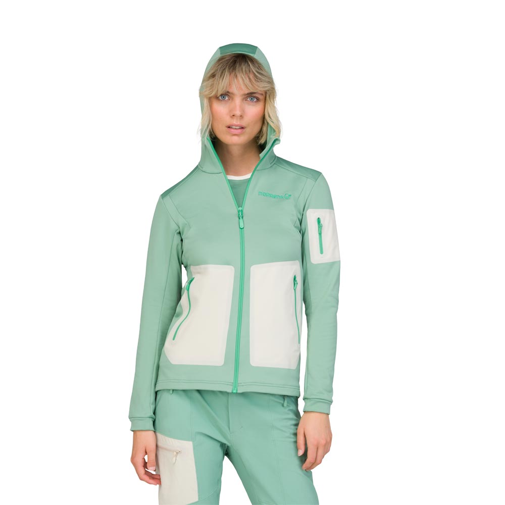 優れた伸縮性と保温性、通気性、速乾性を備えるフードジャケットです。