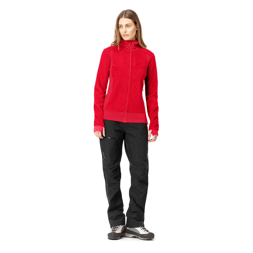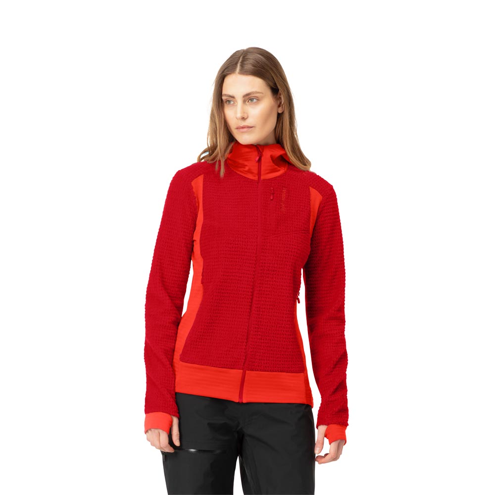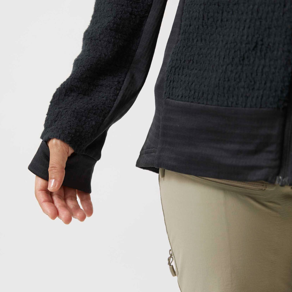 Polartec® Alpha® 120を採用した、様々なアクティビティで重宝する革新的なフード付きジャケットです。本来、中綿素材として開発されたPolartec® Alpha®の表地と裏地を省き、超軽量で保温性と通気性を併せ持つフリースとして製品化しました。肩下から脇下、腕下には伸縮性の高いPolartec® Power Gridを施し、使い手の動きを妨げません。この蒸れないインサレーションは、長い旅への着替えという荷物を少なくすることに一役買ってくれることでしょう。