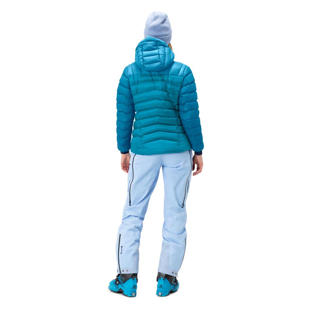 高い保温力と圧縮性を持つ最も多用途に使用できるパッカブル・ダウンジャケッ トです。10デニールの極薄リサイクルポリエステルの生地に、RDS認定の850FP ダウンを150g包入しました(メンズLサイズの商品総重量は382g)。アウター ジャケットの中の中間着としても、そのまま単体での使用もできます。ヘルメット対応の容量を持つフードは片手で調節が可能、裾を絞るドローコードを配し、手首のカフはパワーストレッチを使用しています。パッカブルポケットにコンパクトに収納が可能です。