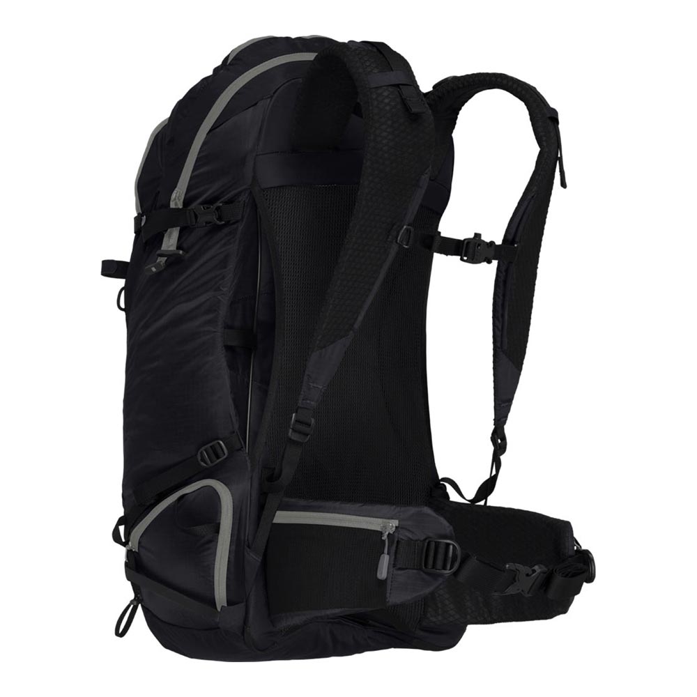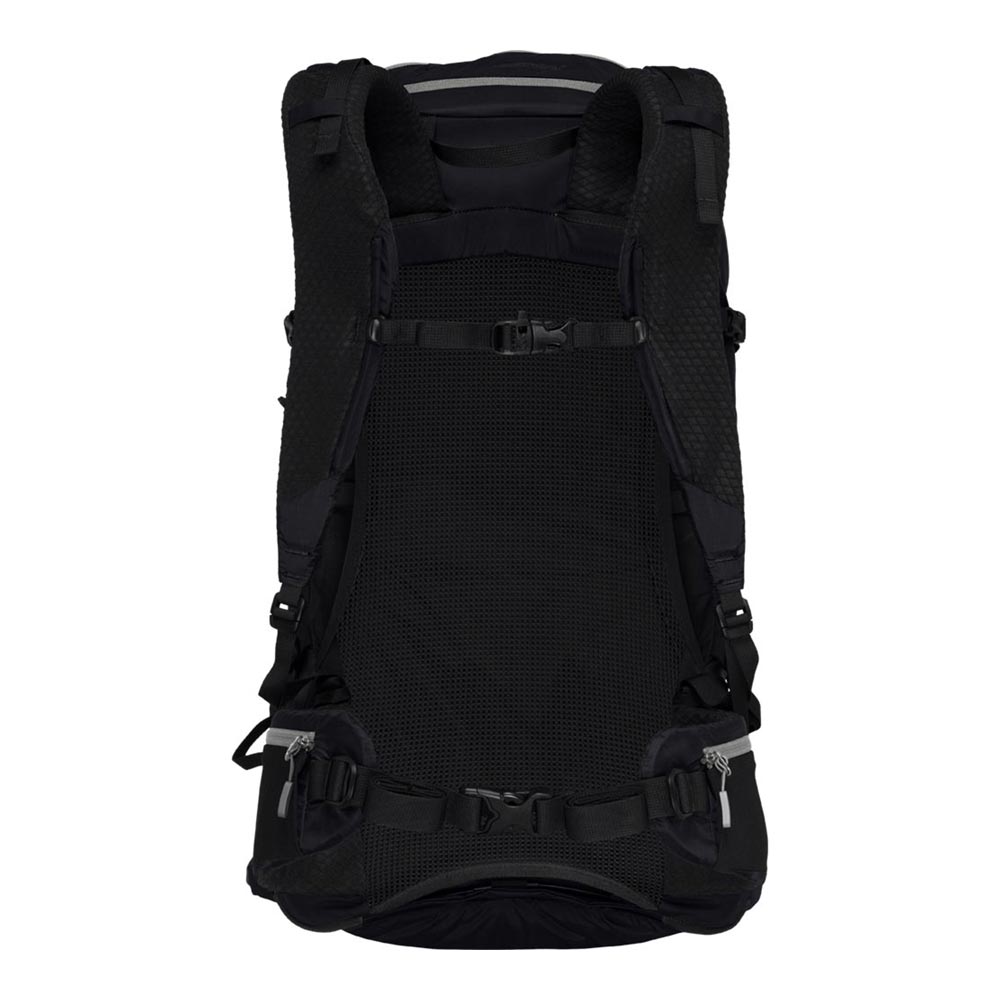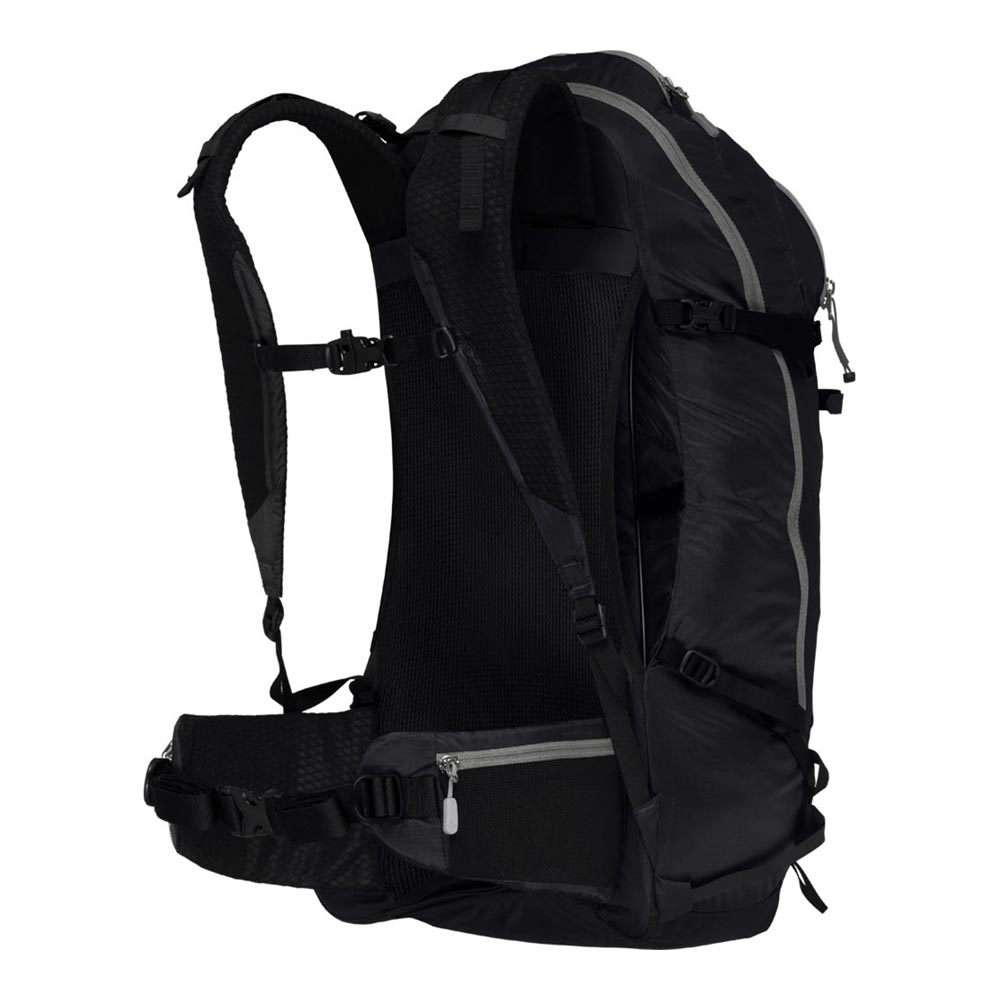 スキーツアーのために作られた、軽量で丈夫な40Lパック。パックの背面は通気性に優れ、背中とパックの間に隙間ができ空気が通る構造になっています。メインの荷室には背面側のU字ジッパーよりアクセス。 バック上部にはゴーグルが 2つ入る十分なスペース、前面にはアバランチギアを整頓して収められる仕切りを備え、底部サイドには背負ったままアクセスできる水筒、クランポン、ロープなどを収納できる荷室があります。 ヘルメットを取り付けられ、内側に雪が流れ込むのを防ぐブリザードネットがボトムに装備されています。 ヒップベルトには小物を入れられるポケットとギアループが配されています。メインファブリックは耐久性に優れた70×320デニールのECONYL?素材(リサイクルナイロン)で、高品質であり資源の再生プロセスを実現しています。 また、耐水圧2000mmのPUコーティングが施されています。