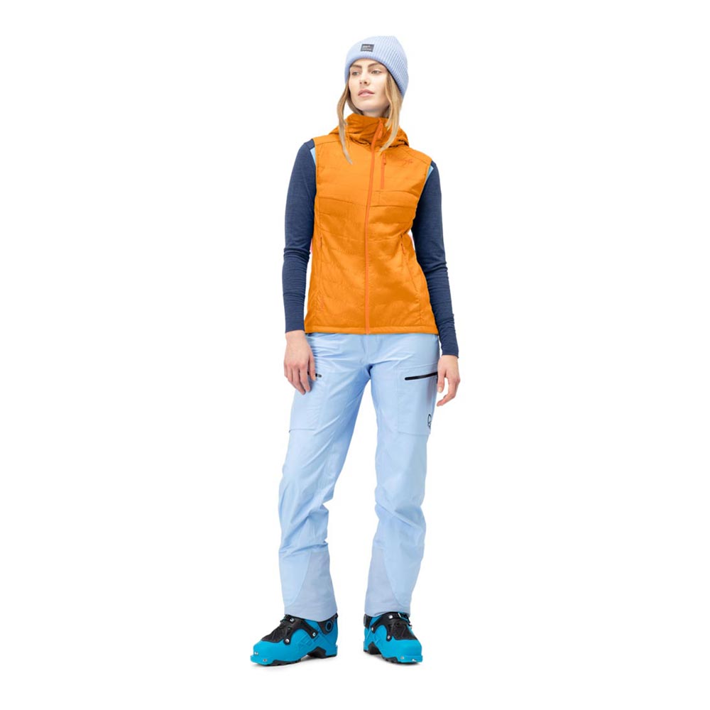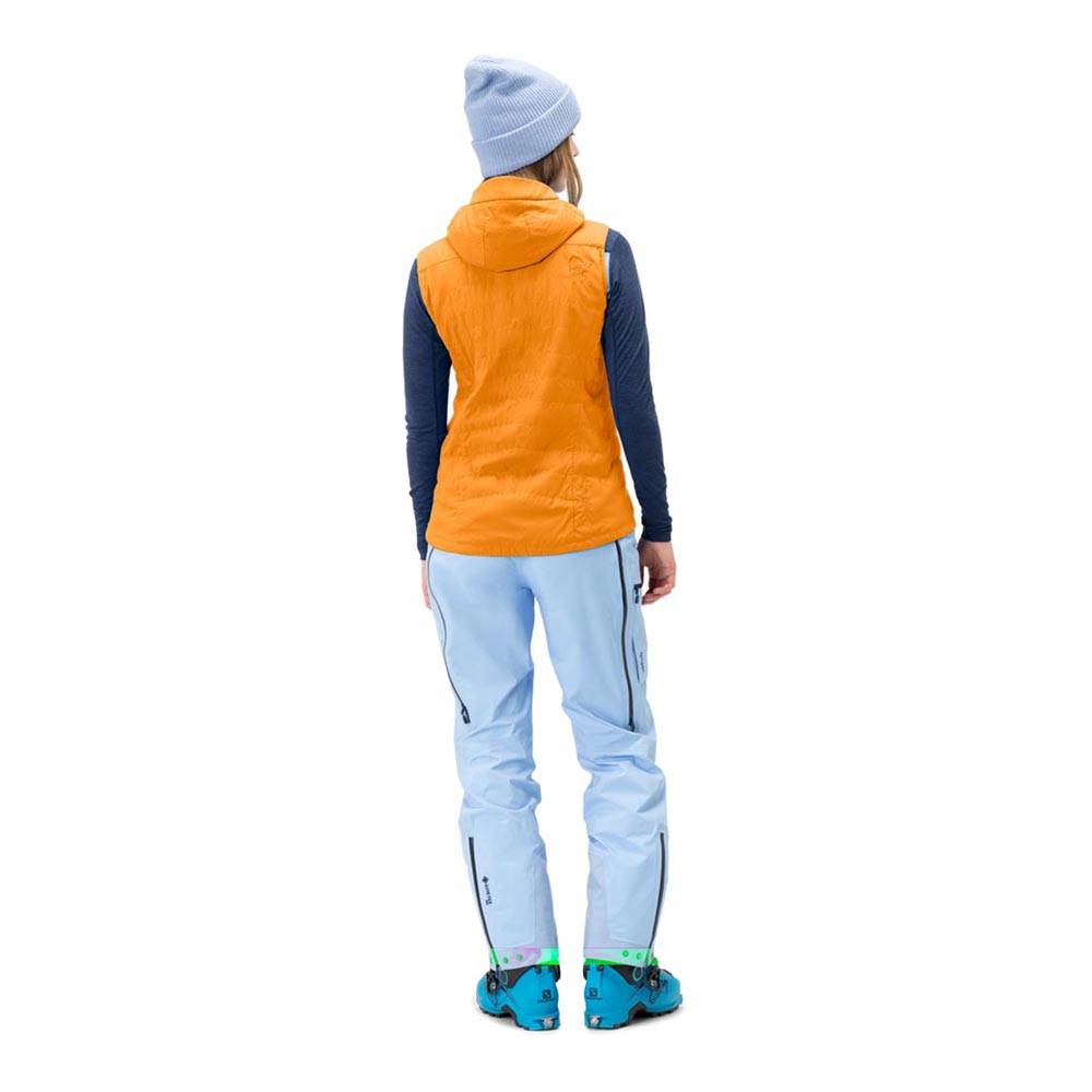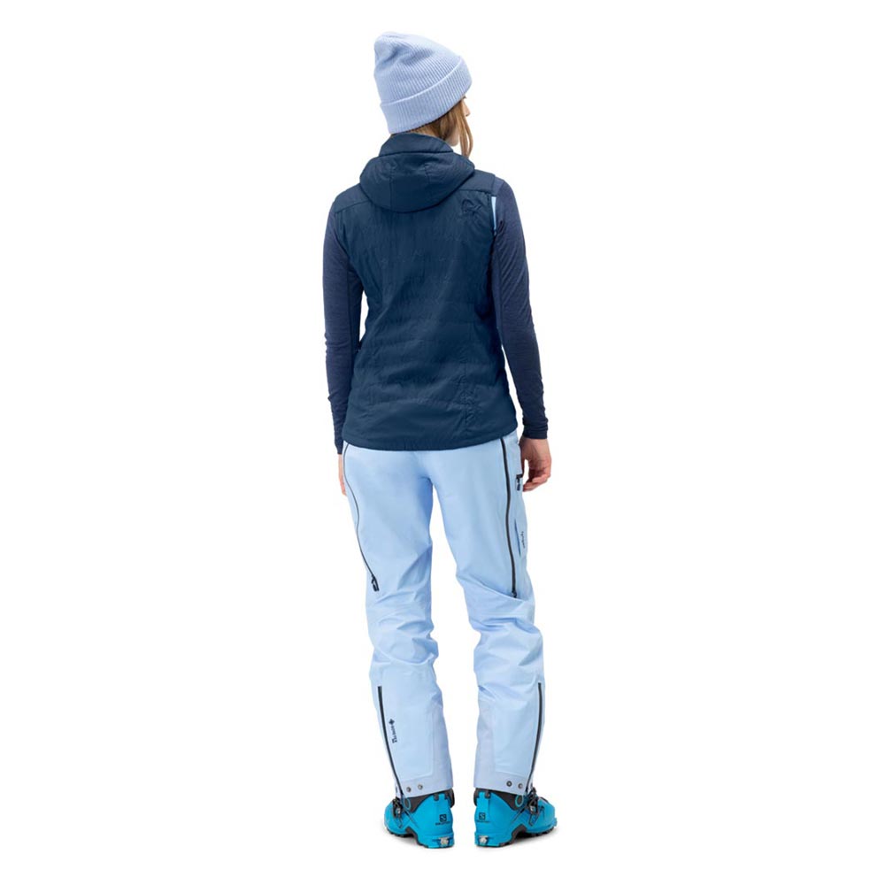 多用途に使用できるインサレーションベストです。20デニールの薄いナイロン表地とPolartec? Alpha? 90インサレーションをバッファリング構造で縫い合わせているため裏地の必要がなく、最高の保温性と通気性を両立しています。行動中に常時着用していても蒸れを感じることのない画期的なインサレーションです。フードはヘルメット対応の容量を持ち片手で調節が可能です。ハンドウォームポケットは手を温めるだけでなく、ベンチレーションとしての機能を担っています。