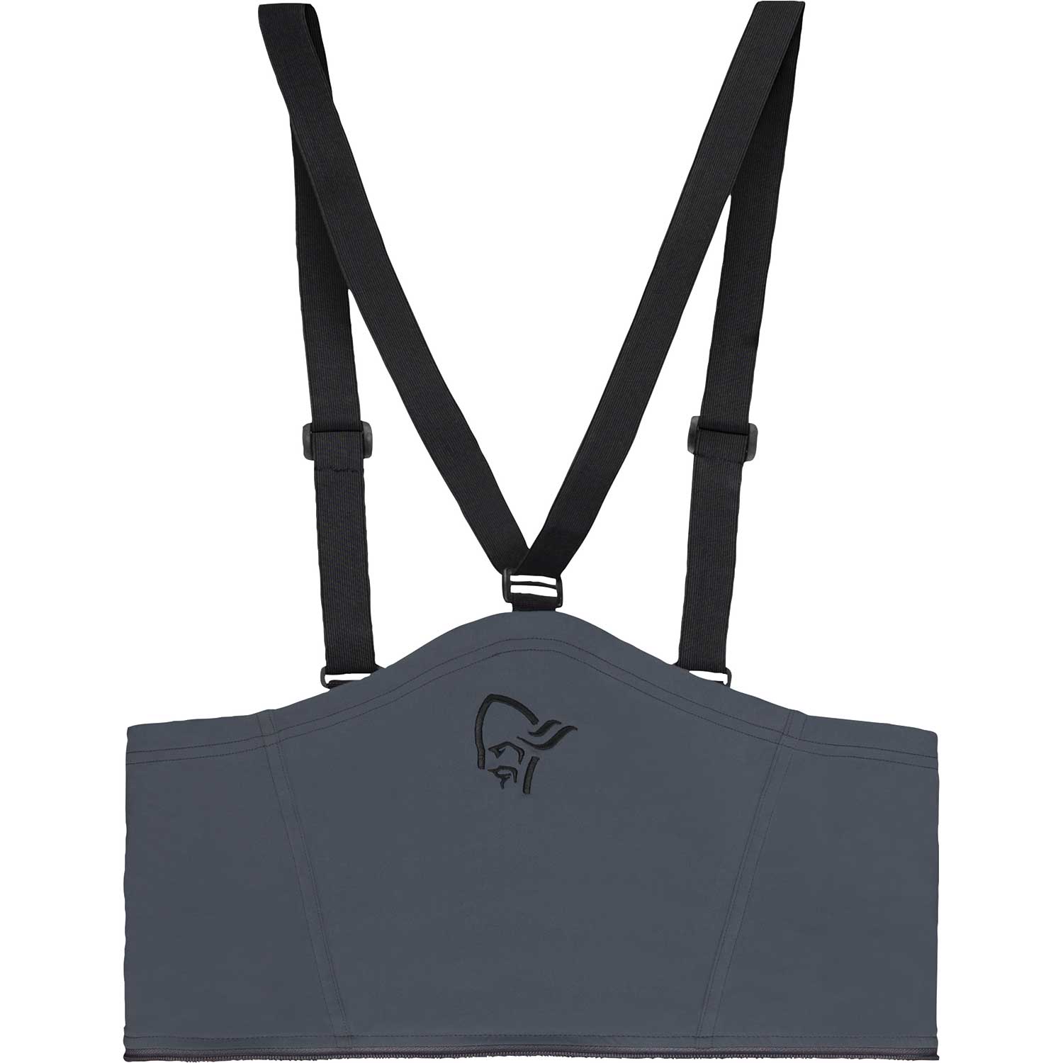 ノローナのジッパーレールの付いたマウンテンカテゴリパンツフィットするビブです。フルオープンするフロントジッパーと、サイドに小さなポケットがついています。