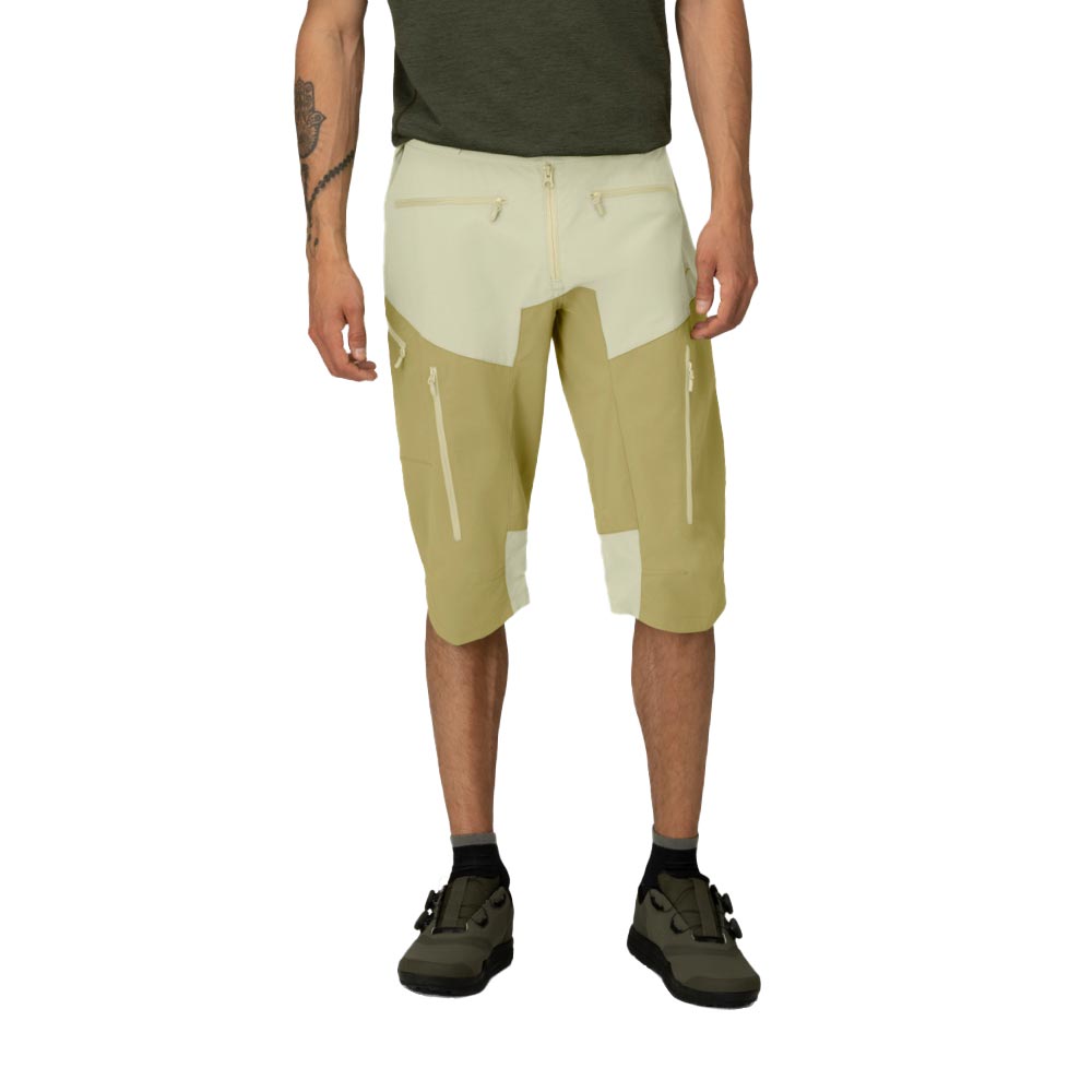 マウンテンバイクのために開発された、透湿性と伸縮性、軽量性に優れた flex1 生地で 作られた履き心地の良いショーツです。バイクを漕いでいる際の天候の変化に対応する ために高い撥水性と速乾性を備えています。膝上丈で、膝を守るニーパッド対応のため に裾の開口部の調節が可能なサイドのベンチレーション、カスタムフィットできる ウエストの調整ベルクロによりフィッティングは万全です。