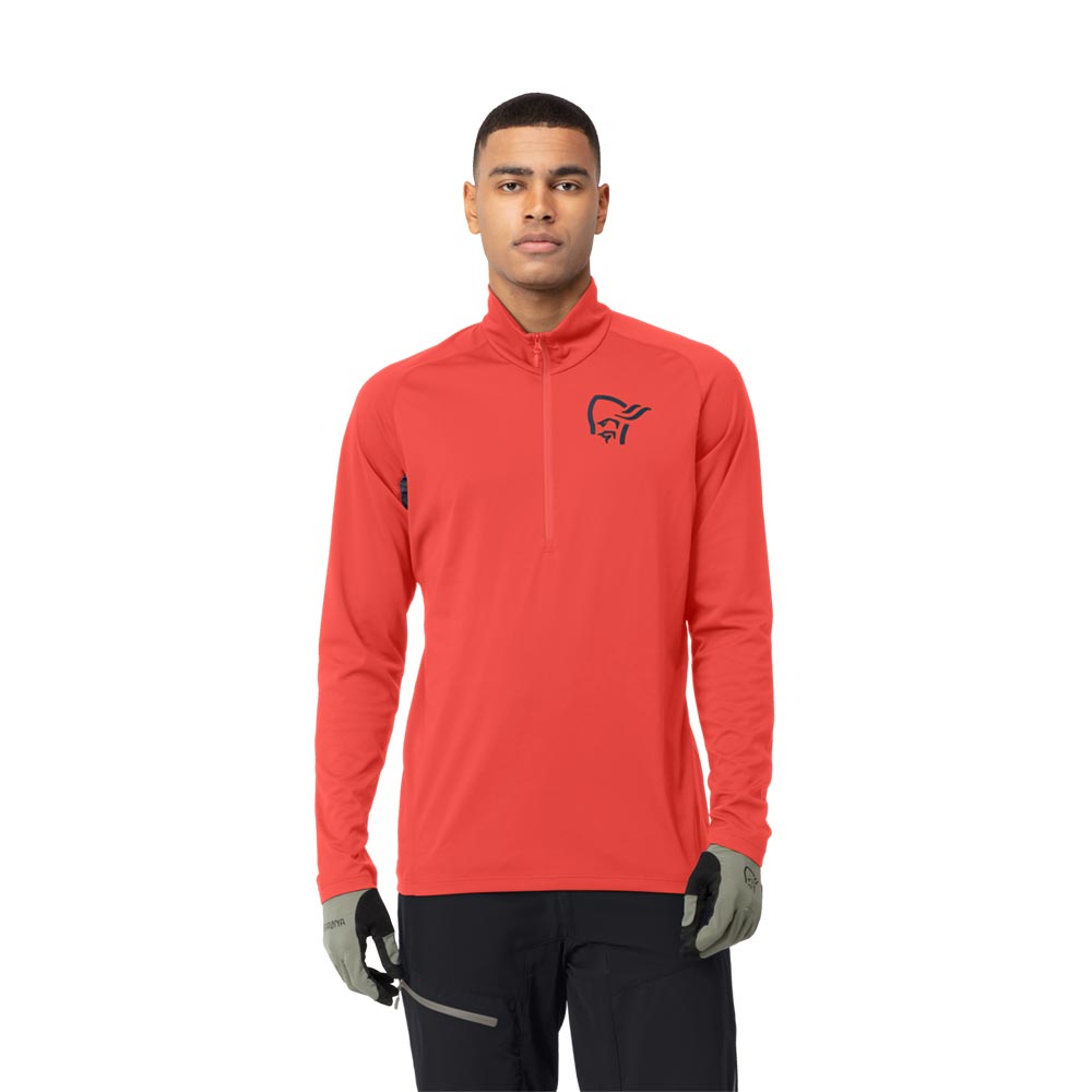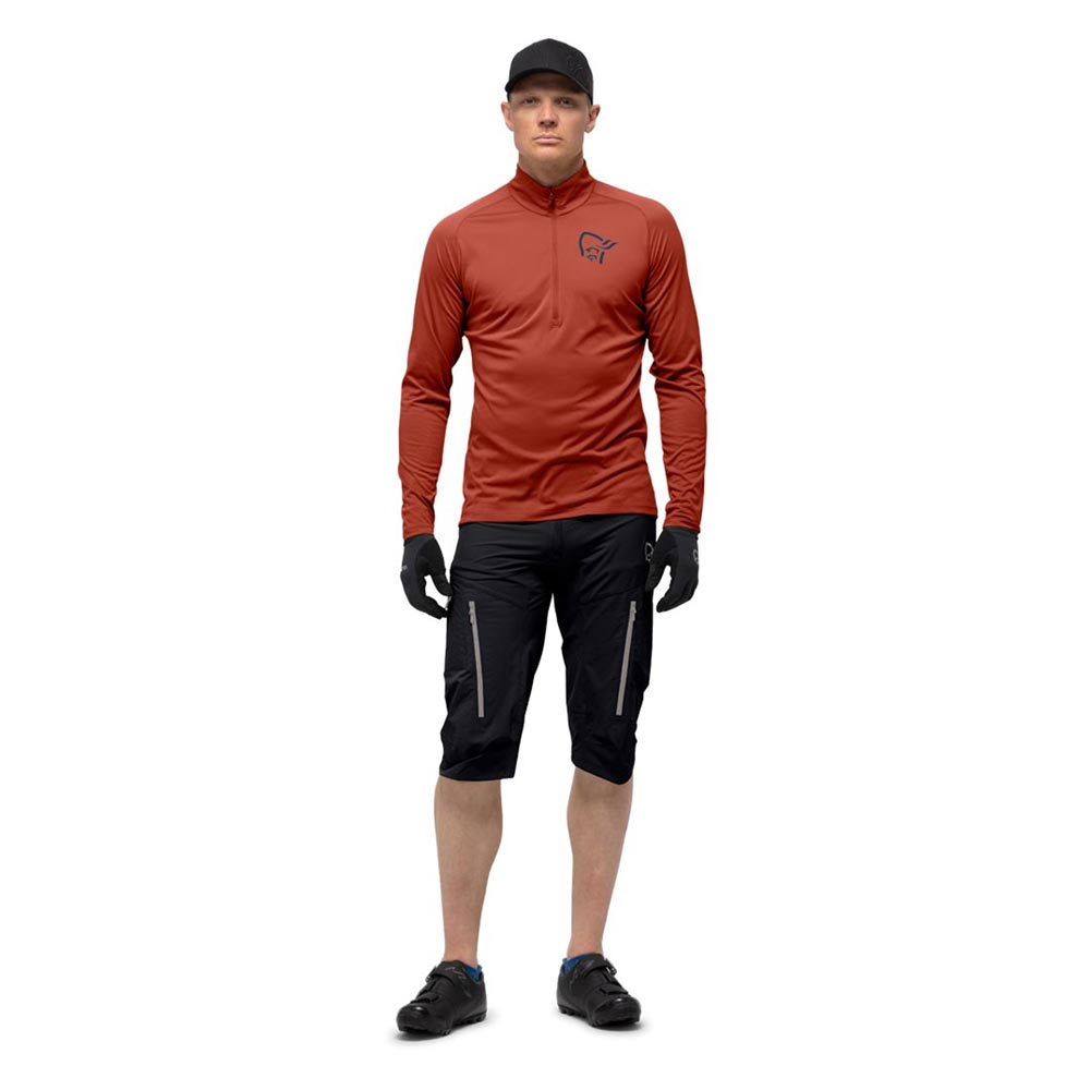 軽量で吸湿速乾性に優れた、バイク用のロングスリーブジップネック。メイン生地は、表面が滑らかで重ね着をした際の抵抗を少なくし、裏地は凹凸があり汗によるベタ付きを軽減。背面と脇下に使用された生地は、メッシュ構造で高い通気性と速乾性を備えています。深めのフロントジップは、ベンチレーションとして機能し、肌寒い日は襟までジッパーを閉めることにより風の侵入を防止。ザックを背負っていてもエントリー可能な背面ポケットを配し、前にかがむバイクの姿勢でも腰を露出させないよう背面が長めのデザインを採用しています。UPF30+以上。右裾裏地にはメガネ・サングラスを拭く際に活躍するグラスクロスが施されています。