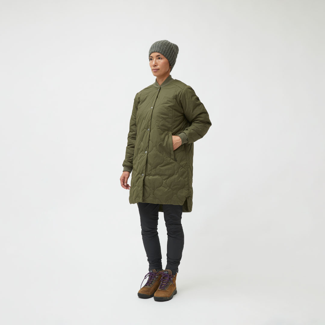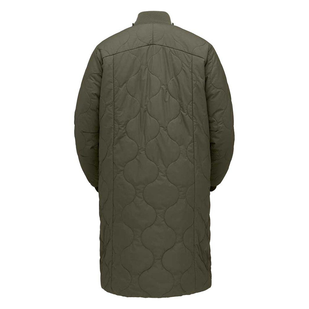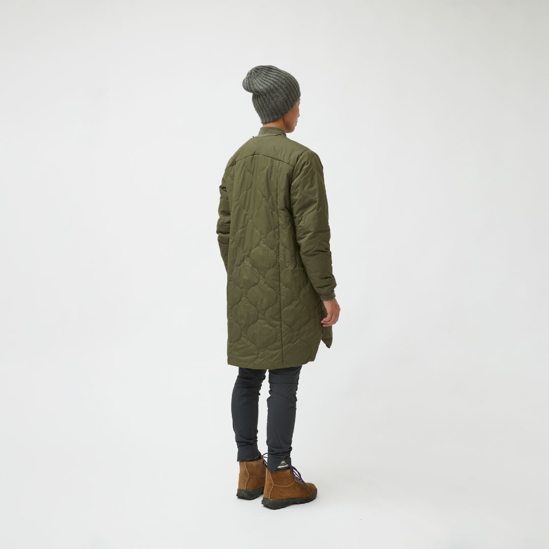 機能性とアーバンライフスタイルを併せ持つ「oslo」コレクションの多目的に使える軽量な化繊中綿入りのロングコートです。表地は45デニールリサイクルナイロンを使用し、防風性と撥水性を備え、中綿には保温性と軽量性を併せ持つ100gPrimaLoft® Silver Bio 100g/m² を使用しています。いくつかのループアタッチメントを使用し oslo Gore-Tex 2L Coa と組み合わせることが可能で保温性を持つ防水コートとして機能します。裾にはサイドスリットがあり、動きやすさを向上させています。