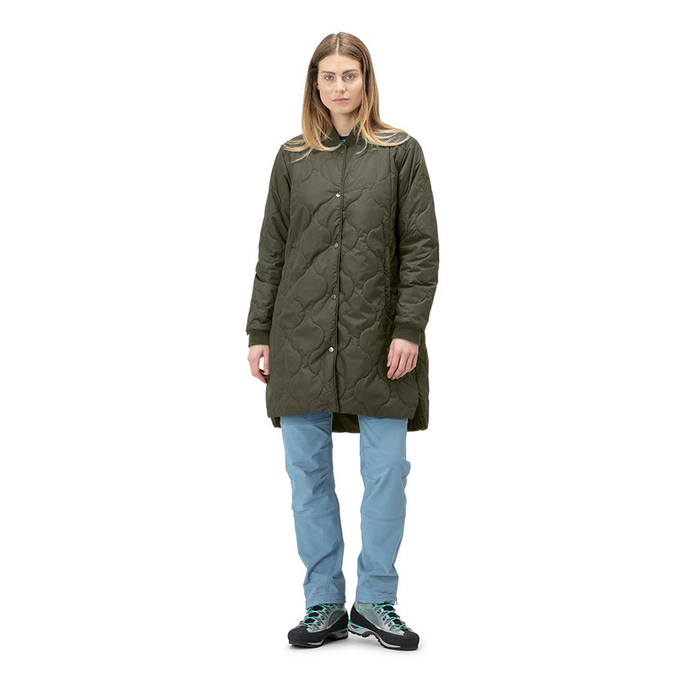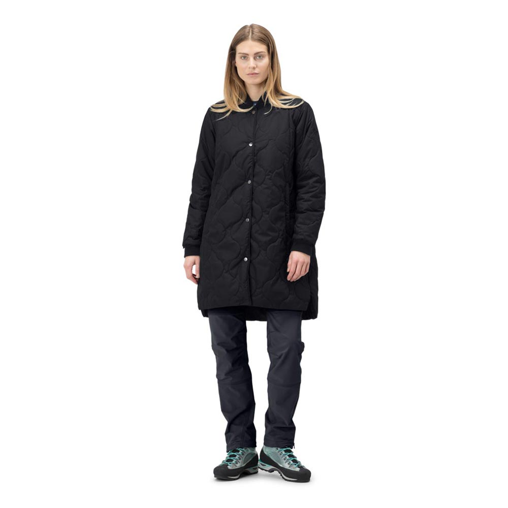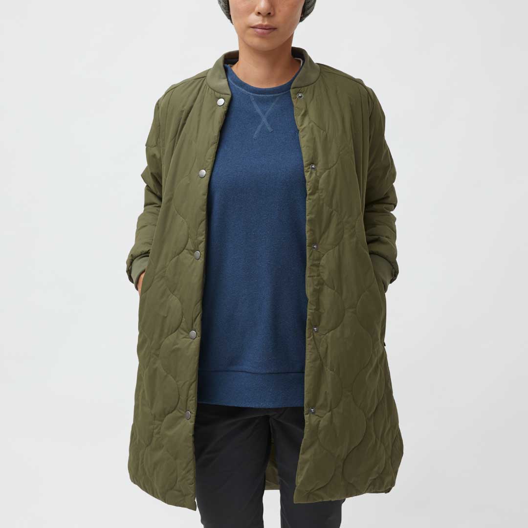 機能性とアーバンライフスタイルを併せ持つ「oslo」コレクションの多目的に使える軽量な化繊中綿入りのロングコートです。表地は45デニールリサイクルナイロンを使用し、防風性と撥水性を備え、中綿には保温性と軽量性を併せ持つ100gPrimaLoft® Silver Bio 100g/m² を使用しています。いくつかのループアタッチメントを使用し oslo Gore-Tex 2L Coa と組み合わせることが可能で保温性を持つ防水コートとして機能します。裾にはサイドスリットがあり、動きやすさを向上させています。