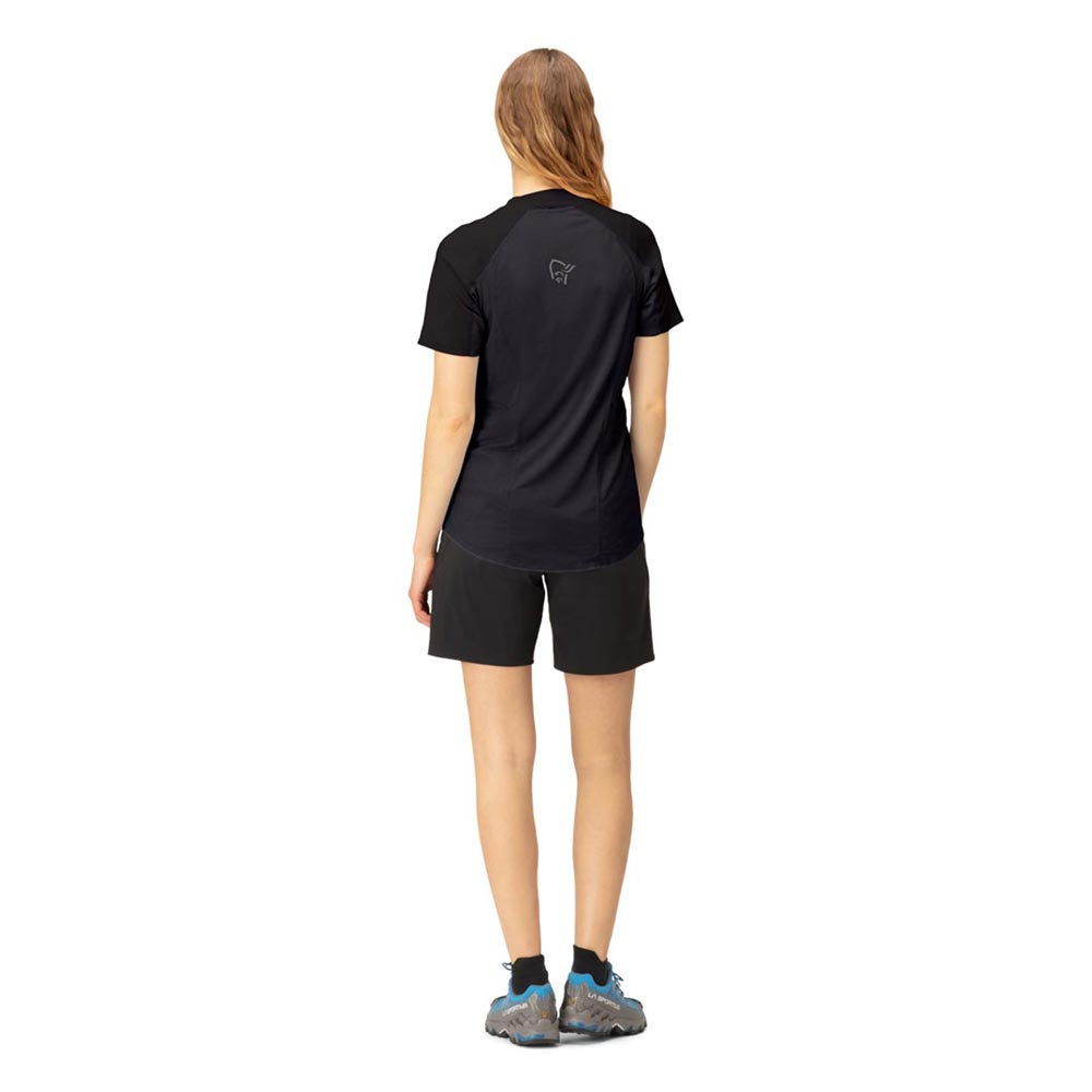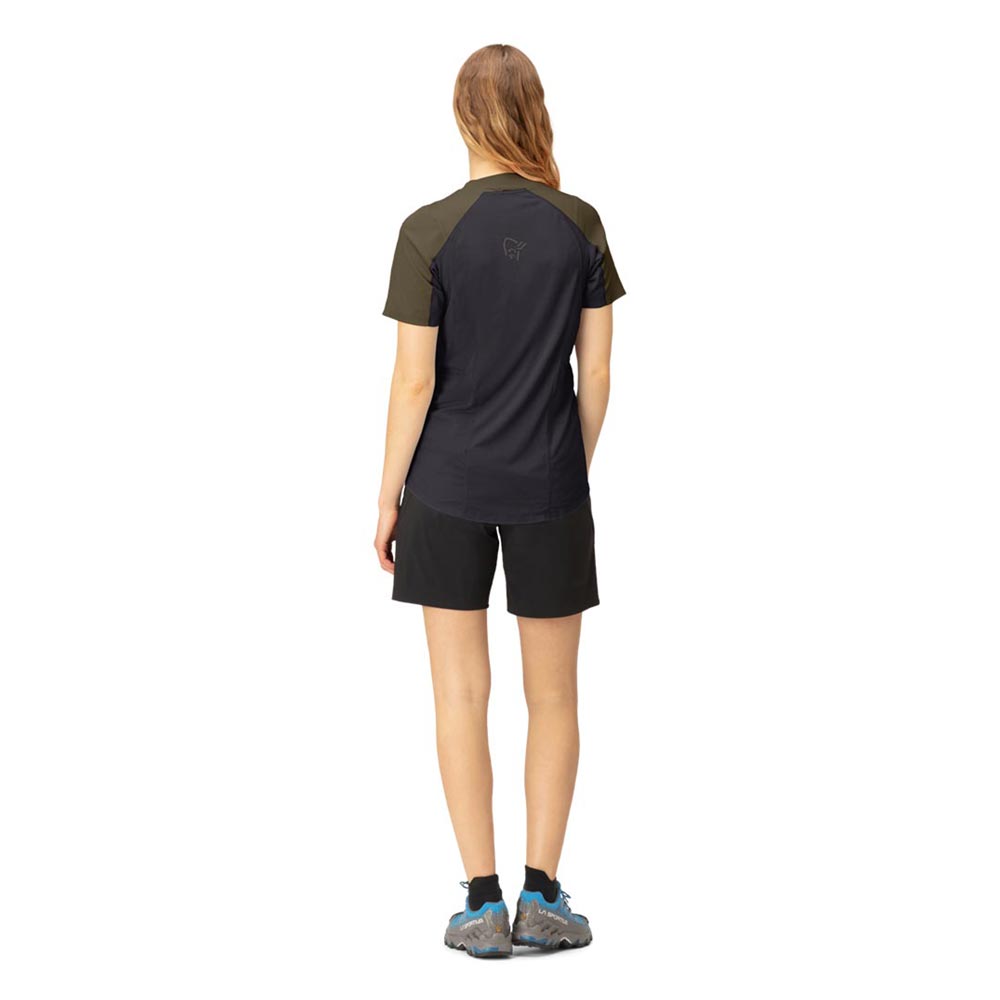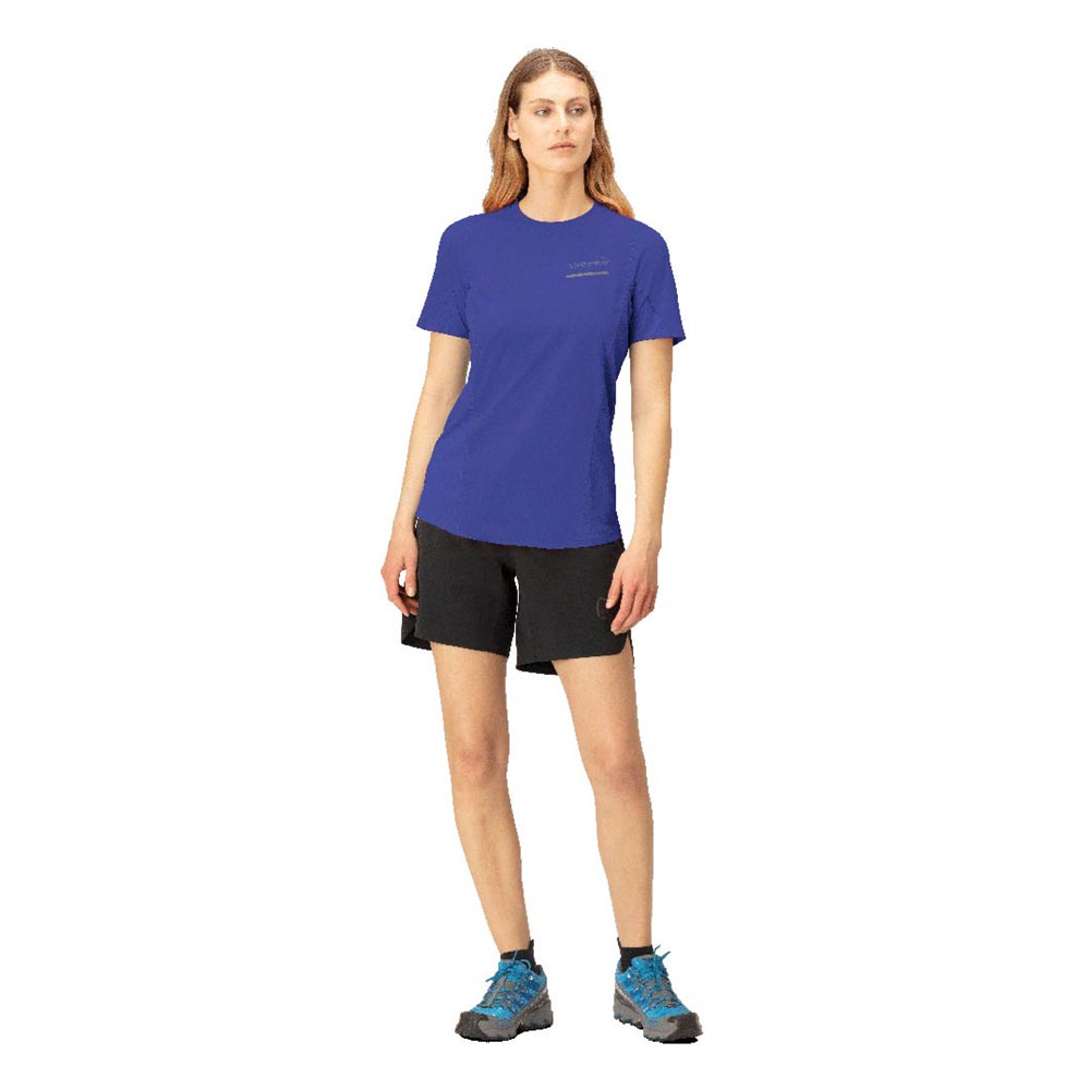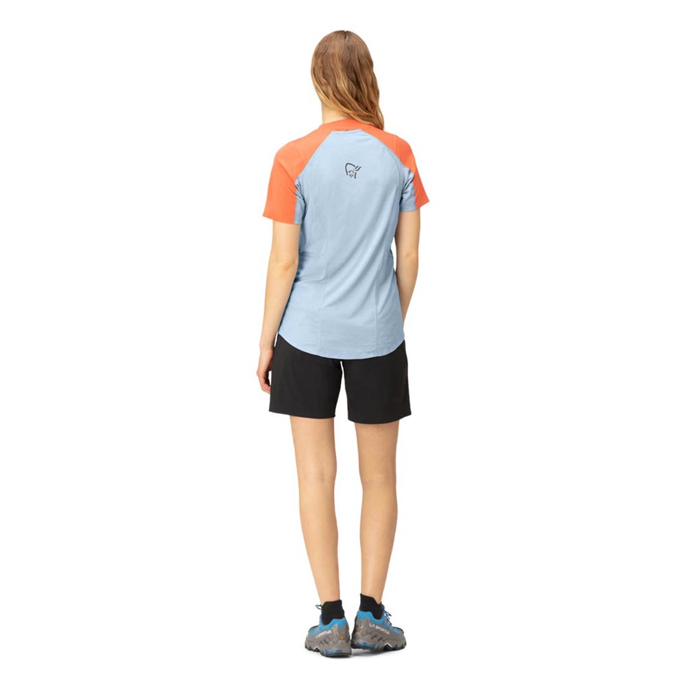軽量で速乾性に優れたTシャツです。トレイルランニング用にデザインされていますが、柔らかさ、軽量性、吸湿性、速乾性を必要とするあらゆるアクティビティに対応します。メイン素材は、吸水速乾加工が施された100%リサイクルポリエステル(91g/m2、UPF45+)、Teijin Deltapeakを用い、肩・上前に使用しています。別素材は、100%リサイクル・ポリエステル(103g/m2、UPF15+)のダブルニットで、HeiQ Fresh FFLという銀を含まない防臭加工が施されており、汗に含まれる脂肪やタンパク質を除去することで細菌の増殖能力をなくし、臭いを軽減します。この生地は脇の下にも配されている為、防臭効果が高く、洗濯が必要になるまで何度でも使用することができます。