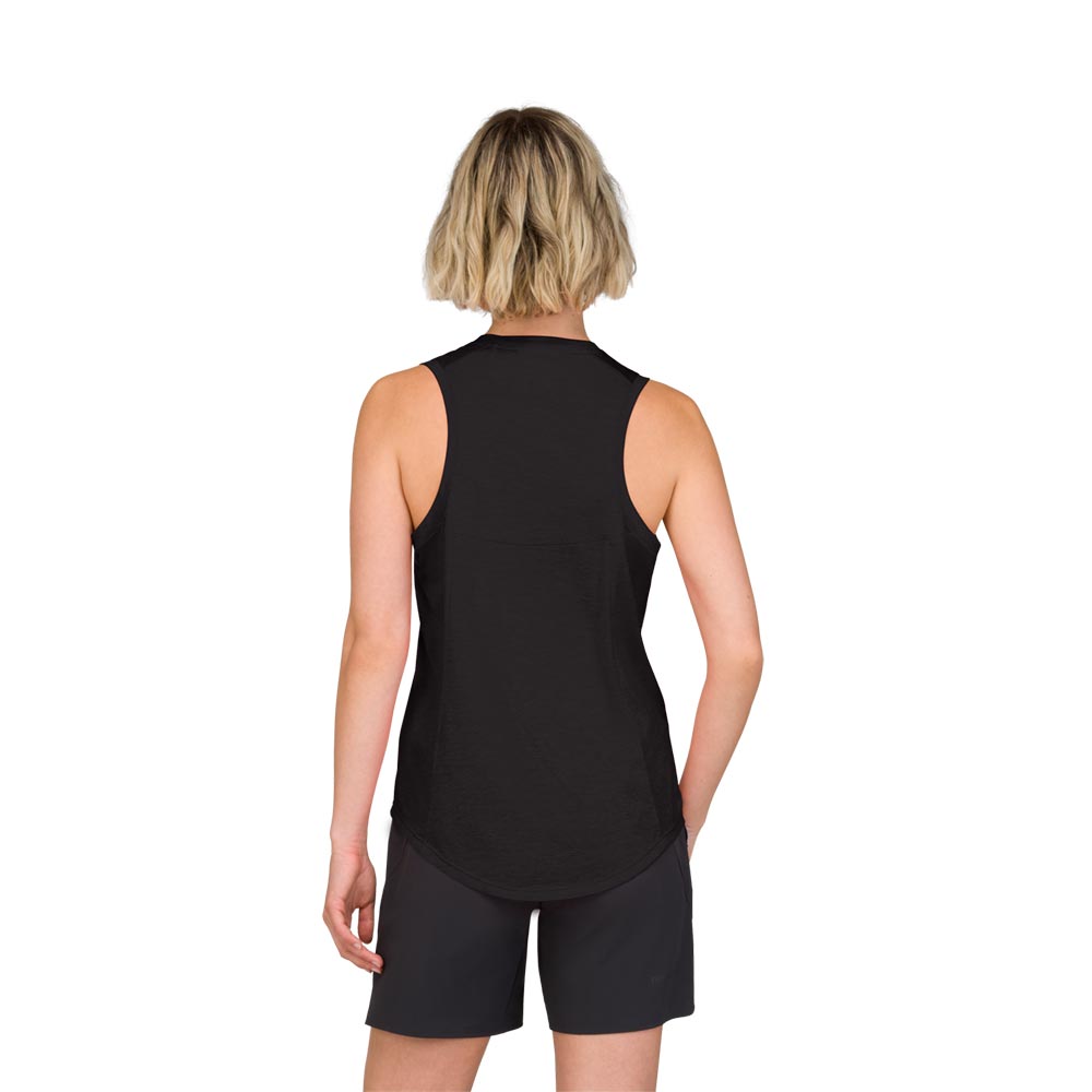 軽量で速乾性に優れたタンクトップです。トレイルランニング用にデザインされていますが、柔らかさ、軽量性、吸湿性、速乾性を必要とするあらゆるアクティビティに対応します。メイン素材は、吸水速乾加工に優れた100%リサイクルポリエステル(103g/m2、UPF15+)を用いHeiQ Fresh FFLという銀を含まない防臭加工を施しています。汗に含まれる脂肪やタンパク質を除去することで細菌の増殖能力をなくし、臭いを軽減します。