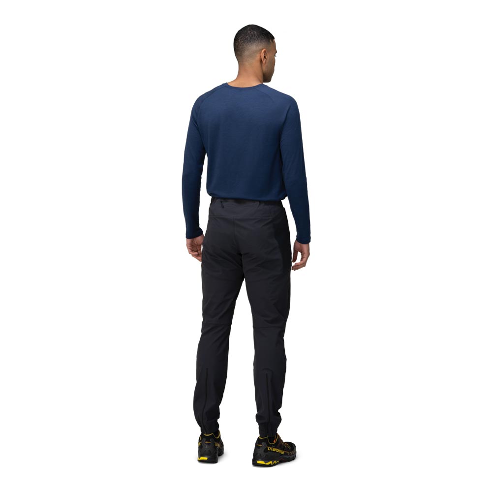 タイツやレギンスよりもゆったりとしたフィット感を持つ、高いストレッチ性、防風性、透湿性に優れた軽量なソフトシェルパンツです。トレイルラン用に開発されましたが、登山やトレッキングにも最適です。裾に配されたマチ付きのジッパーを開閉することにより、ハイカット&ミッドカットのシューズにも対応し、着脱も容易にします。膝の関節はランニング時の姿勢に合わせてシェイプされています。