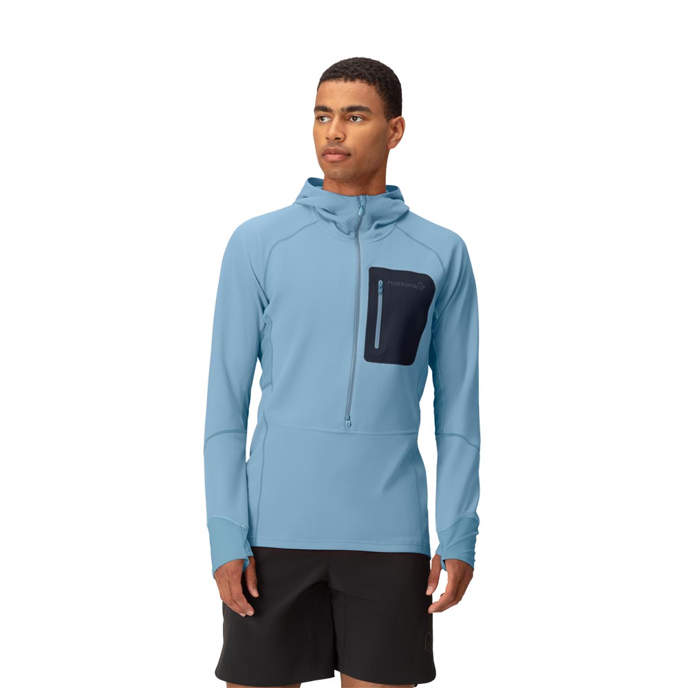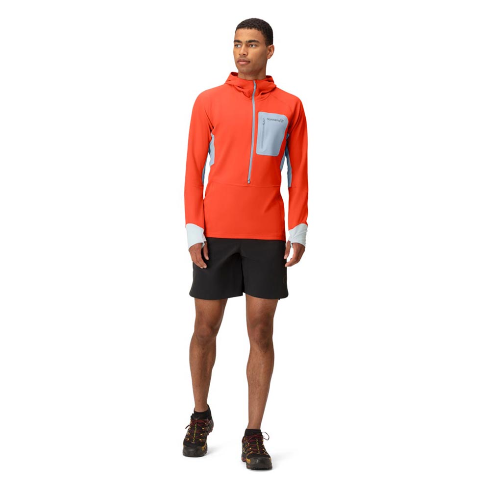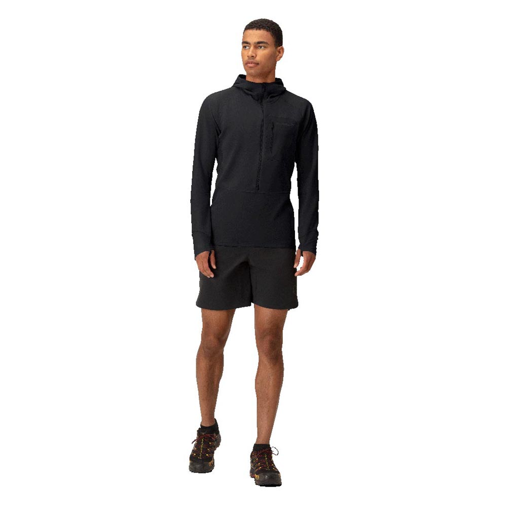トレイルランニング用の軽量なミッドレイヤーです。この薄手のフリースはトレイルランニングのために開発されましたが、耐久性、速乾性、保温性に優れているため、様々なアウトドアアクティビティに対応します。メインファブリックは、UPF50+のリサイクル・ニット・ポリエステル100%140g/m2です。背中と脇の下には、より軽量で透湿性に優れた素材を使用しています。これはメッシュ構造でUPF30+の127g/m2のリサイクル・ポリエステル100%です。どちらの生地もHeiQ Fresh FFLという銀を含まない防臭加工が施されており、汗に含まれる脂肪やタンパク質を除去することで細菌の増殖能力をなくし、臭いを軽減します。