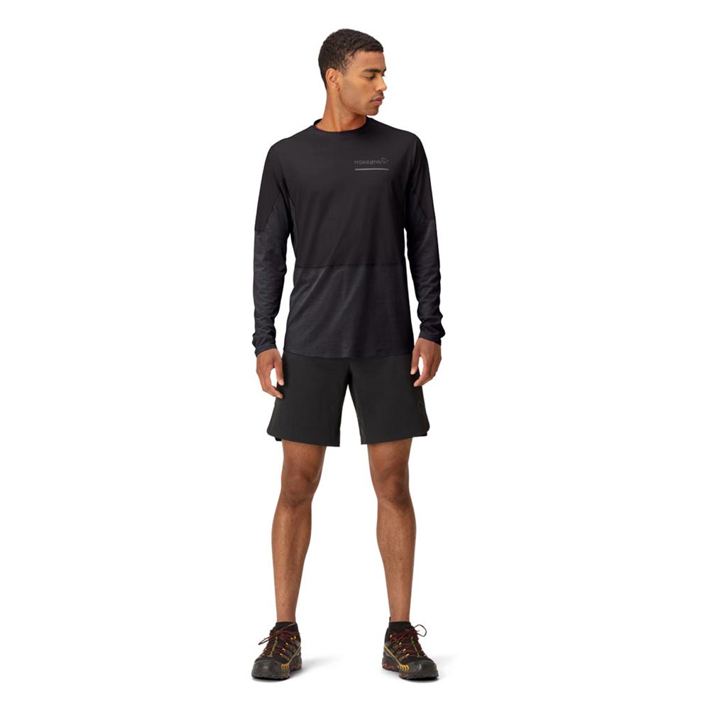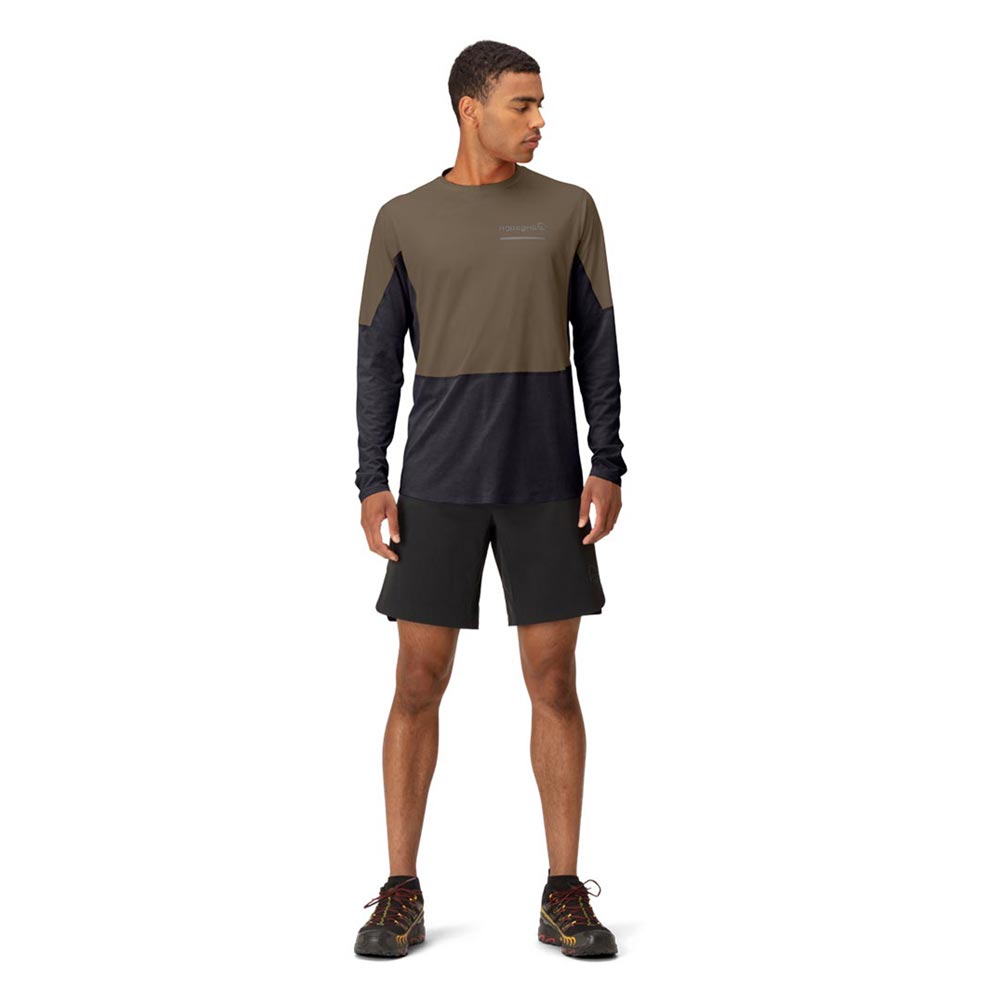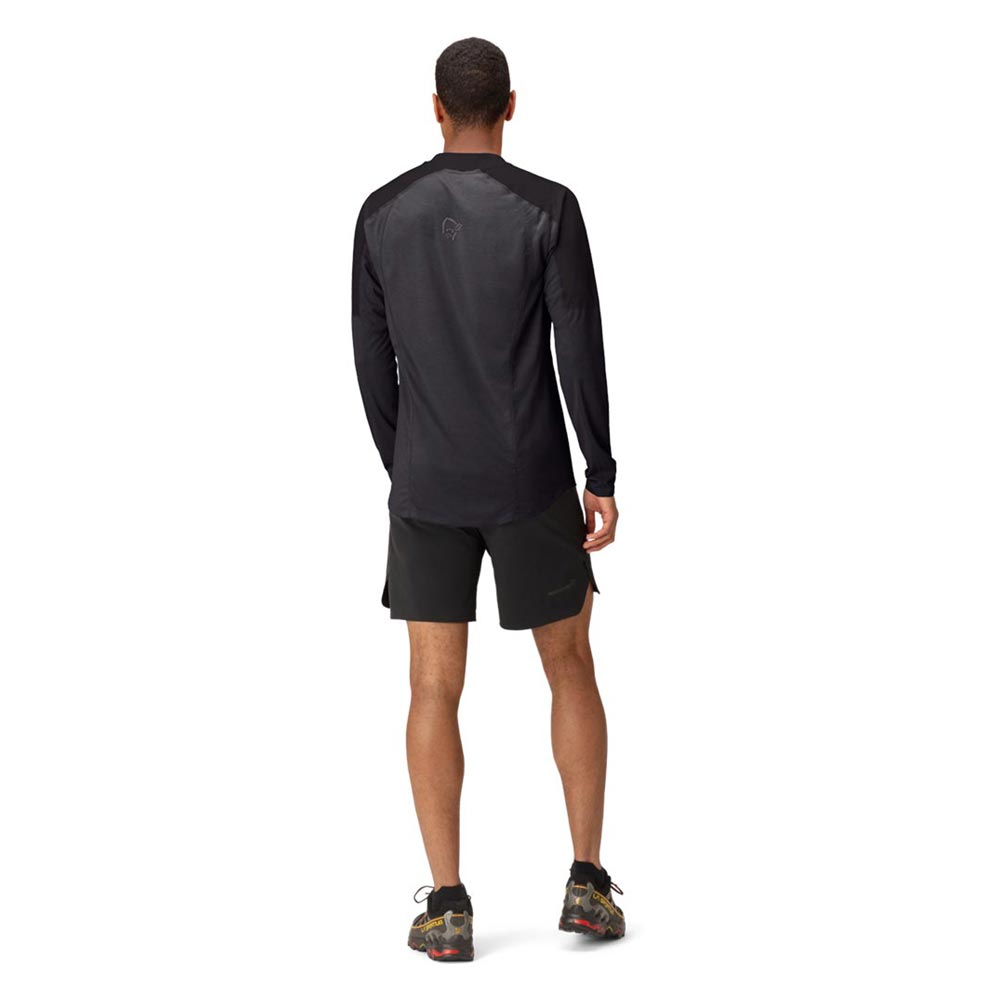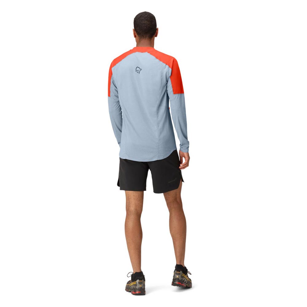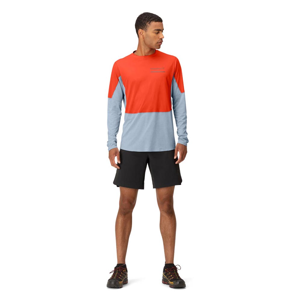 軽量で速乾性に優れたロングスリーブです。トレイルランニング用にデザインされていますが、柔らかさ、軽量性、吸湿性、速乾性を必要とするあらゆるアクティビティに対応します。メイン素材は、吸水速乾加工が施された100%リサイクルポリエステル(91g/m2、UPF45+)、Teijin Deltapeakを用い、肩・上前に使用しています。別素材は、100%リサイクル・ポリエステル(103g/m2、UPF15+)のダブルニットで、HeiQ Fresh FFLという銀を含まない防臭加工が施されており、汗に含まれる脂肪やタンパク質を除去することで細菌の増殖能力をなくし、臭いを軽減します。この生地は脇の下にも配されている為、防臭効果が高く、洗濯が必要になるまで何度でも使用することができます。