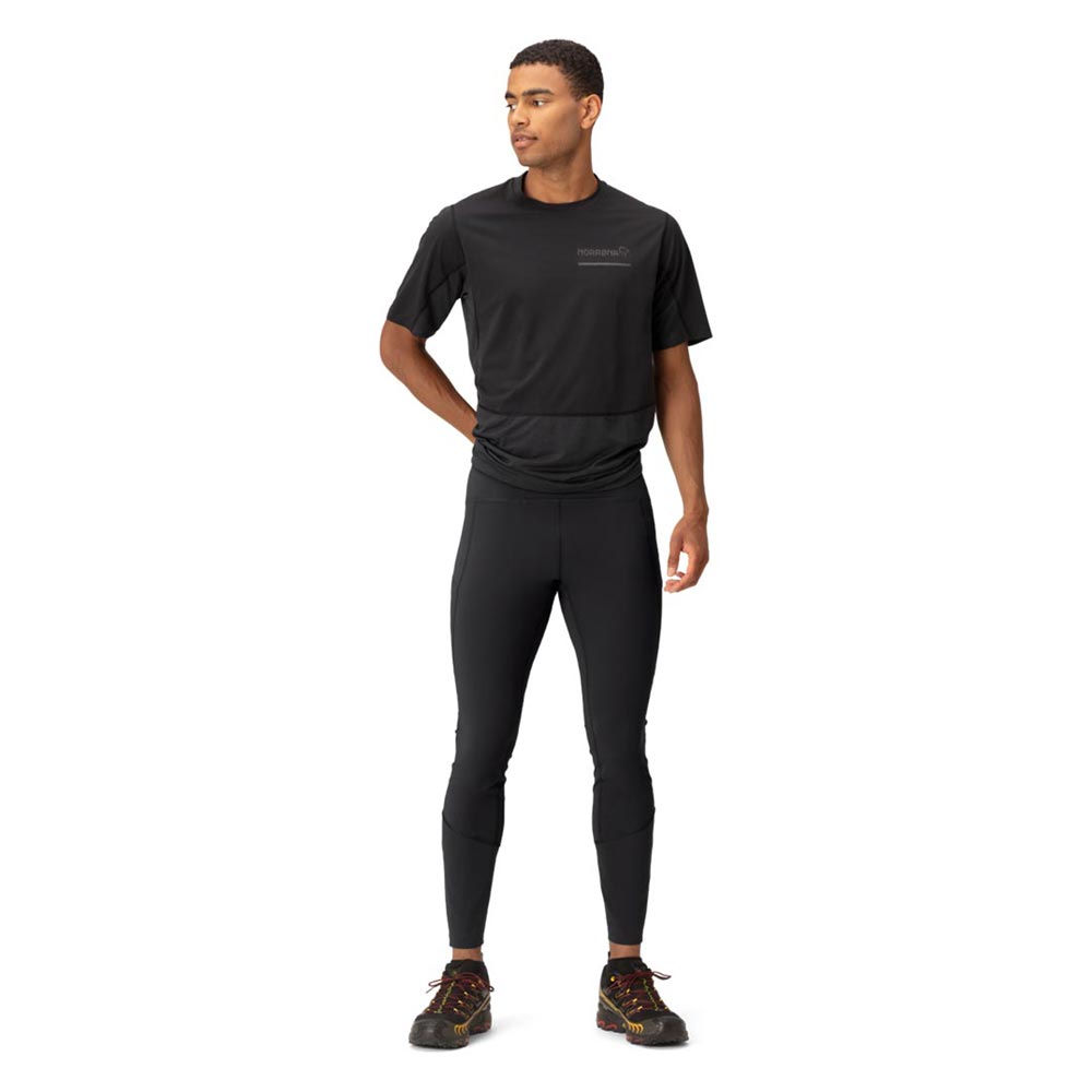 トレイルランニングのための軽量で伸縮性に優れ、充実した機能を持つタイツです。この履き心地の良いタイツはトレイルランニングのために開発されましたが、タイツを使用したい様々なアクティビティに使用できます。高い伸縮性を持ったストレッチナイロンは丈夫で軽量な繊維であり、速乾性に優れています。身体にフィットし、優れた運動性を発揮すると共に下着が透けない仕様です。下肢の補強には伸縮性と軽量性に優れたflex1ソフトシェル素材を使用し、優れた耐久性、高い通気性による湿度管理を実現しています。