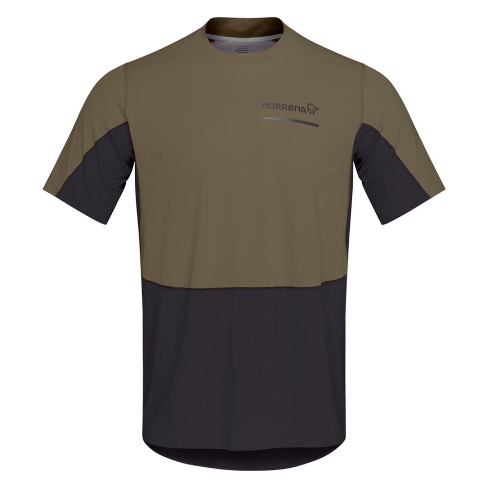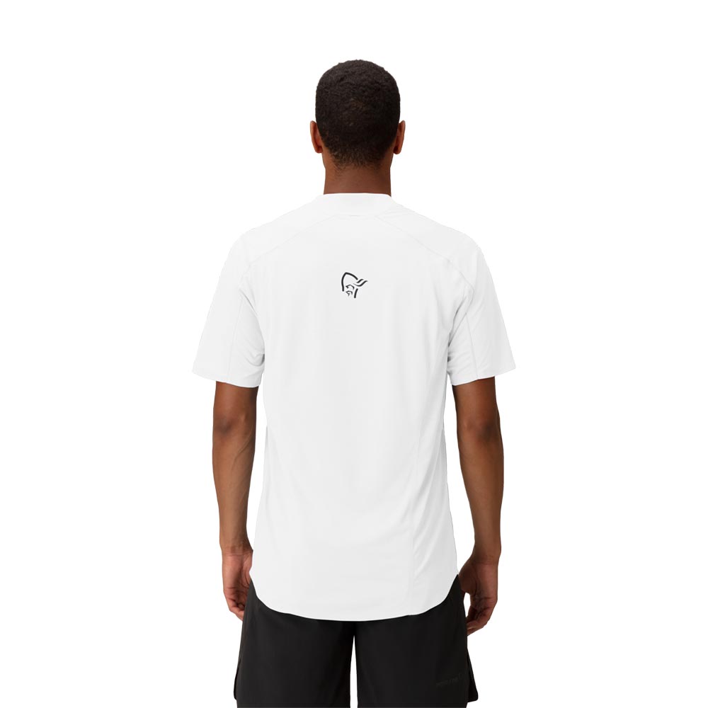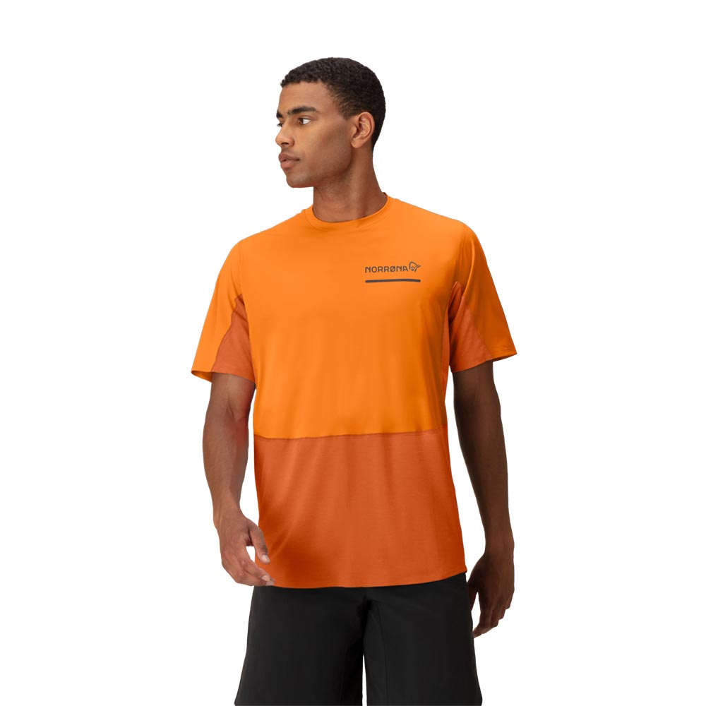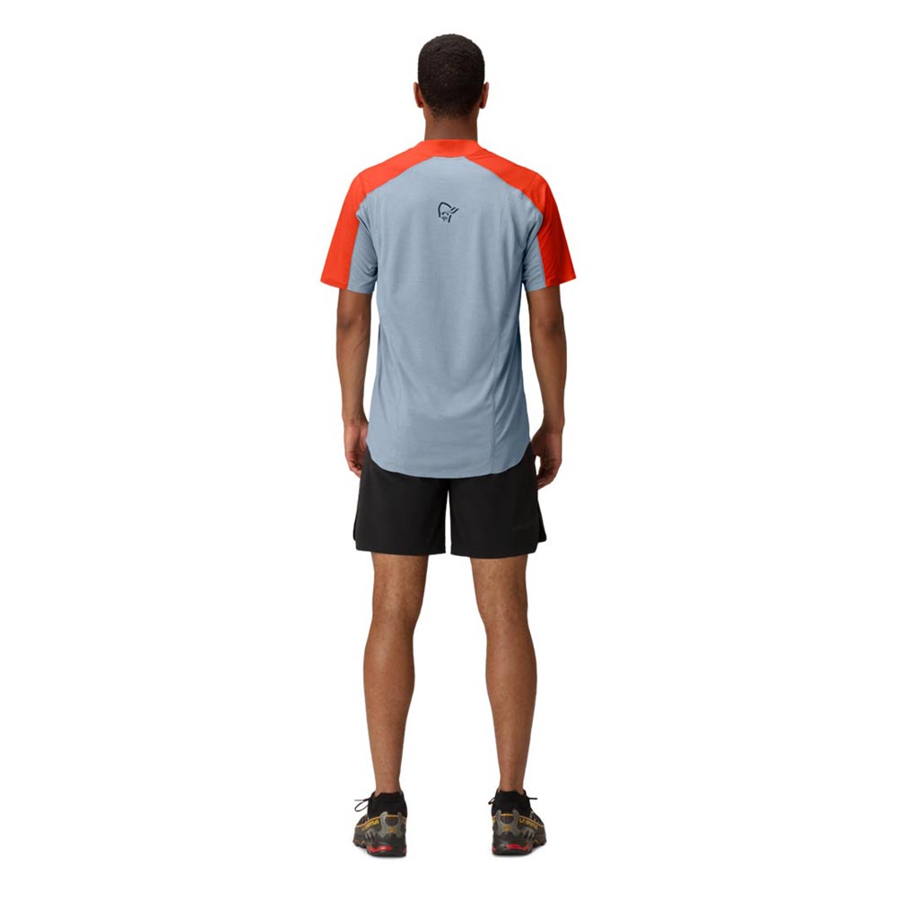 軽量で速乾性に優れたTシャツです。トレイルランニング用にデザインされていますが、柔らかさ、軽量性、吸湿性、速乾性を必要とするあらゆるアクティビティに対応します。メイン素材は、吸水速乾加工が施された100%リサイクルポリエステル(91g/m2、UPF45+)、Teijin Deltapeakを用い、肩・上前に使用しています。別素材は、100%リサイクル・ポリエステル(103g/m2、UPF15+)のダブルニットで、HeiQ Fresh FFLという銀を含まない防臭加工が施されており、汗に含まれる脂肪やタンパク質を除去することで細菌の増殖能力をなくし、臭いを軽減します。この生地は脇の下にも配されている為、防臭効果が高く、洗濯が必要になるまで何度でも使用することができます。