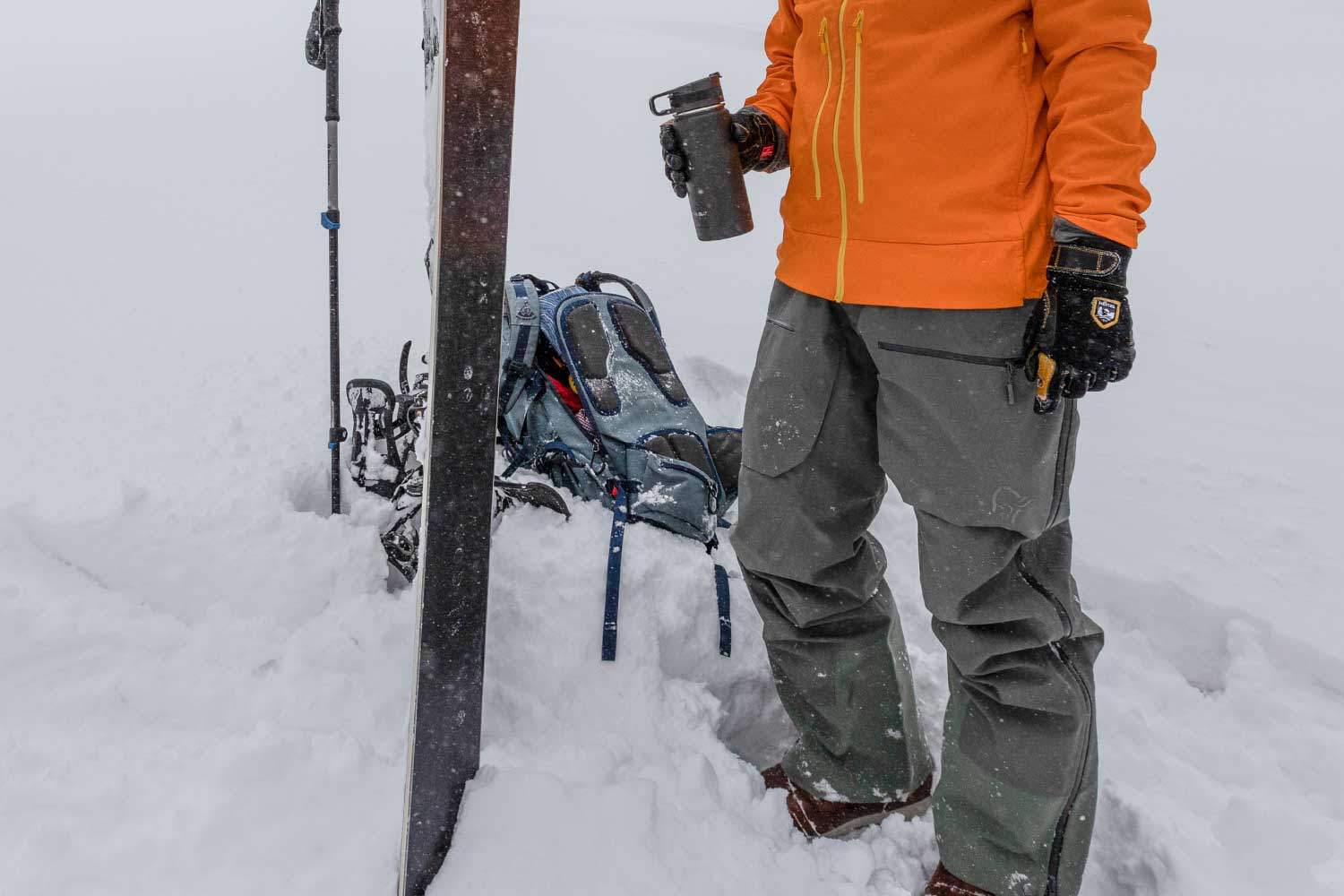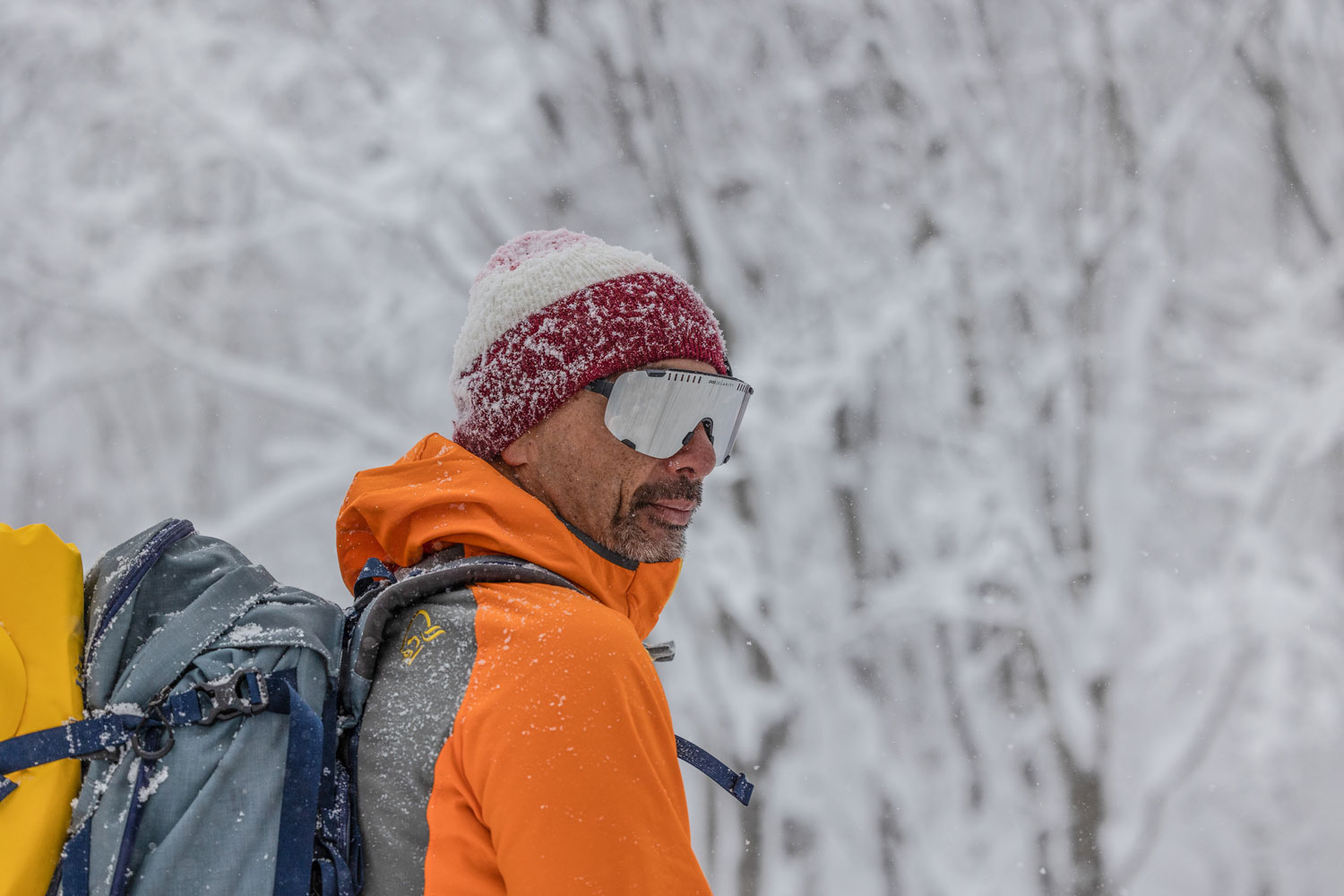 厳冬期のアウターにはロフォテンゴアテックスプロジャケットを使っています。吹雪の日も多いので、防風性と防水性、透湿性が高く、また毎日ガイド仕事で使っても支障のない耐久性は頼りになります。パンツは厳冬期から春まで、どんな季節でもロフォテンゴアテックスプロパンツを選びます。しっかりとした生地感は山の中で頼りがいがあるし、濡れやすくなる春もゴアテックスプロなら安心です。もちろん、スキーでもスノーボードでもハイクでも、下半身の動きにはストレスがないのがいいですね。