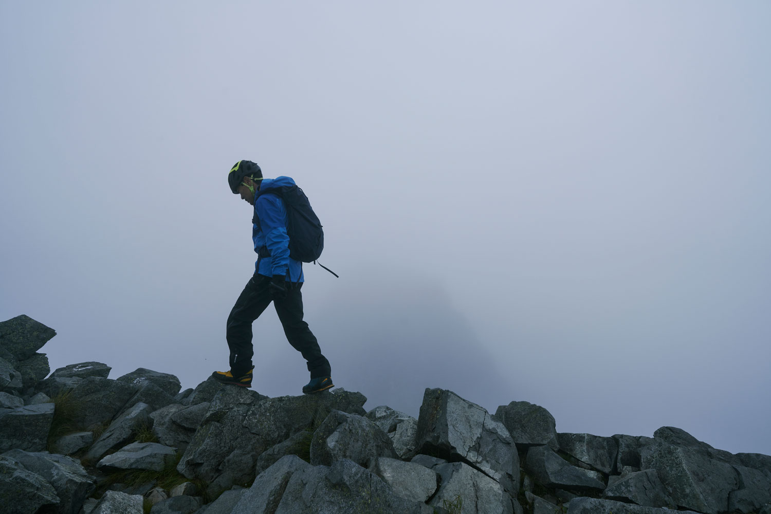 穂高の岩稜を行く倉岡の足取りには無駄がない。手をかける岩や足を置く位置もあらかじめ決められていたかのように迷いがなく、そんな一挙手一投足を見るのは気持ちのいいものだ。けれども、歩みのスピード自体はけっして速いものではなかった。酸素の希薄なヒマラヤの高所で難なく行動できる心肺機能があれば、空気が濃密な日本の山なら飛ぶように歩けても不思議はない。しかし倉岡に言わせると「だからこそ、日本の山を歩くのはキツイ」のだそうだ。
