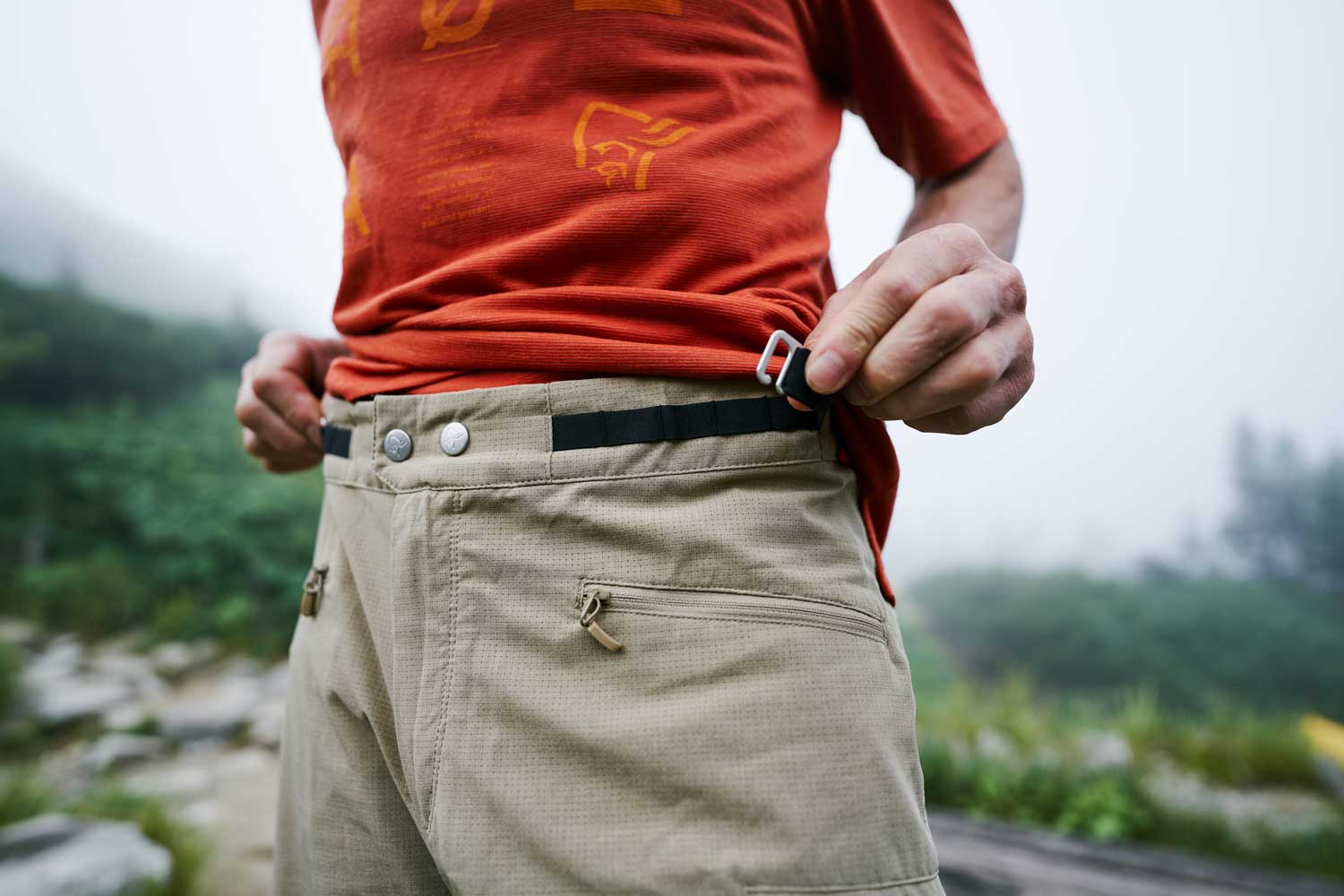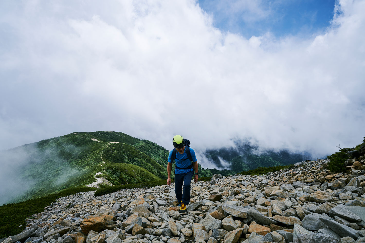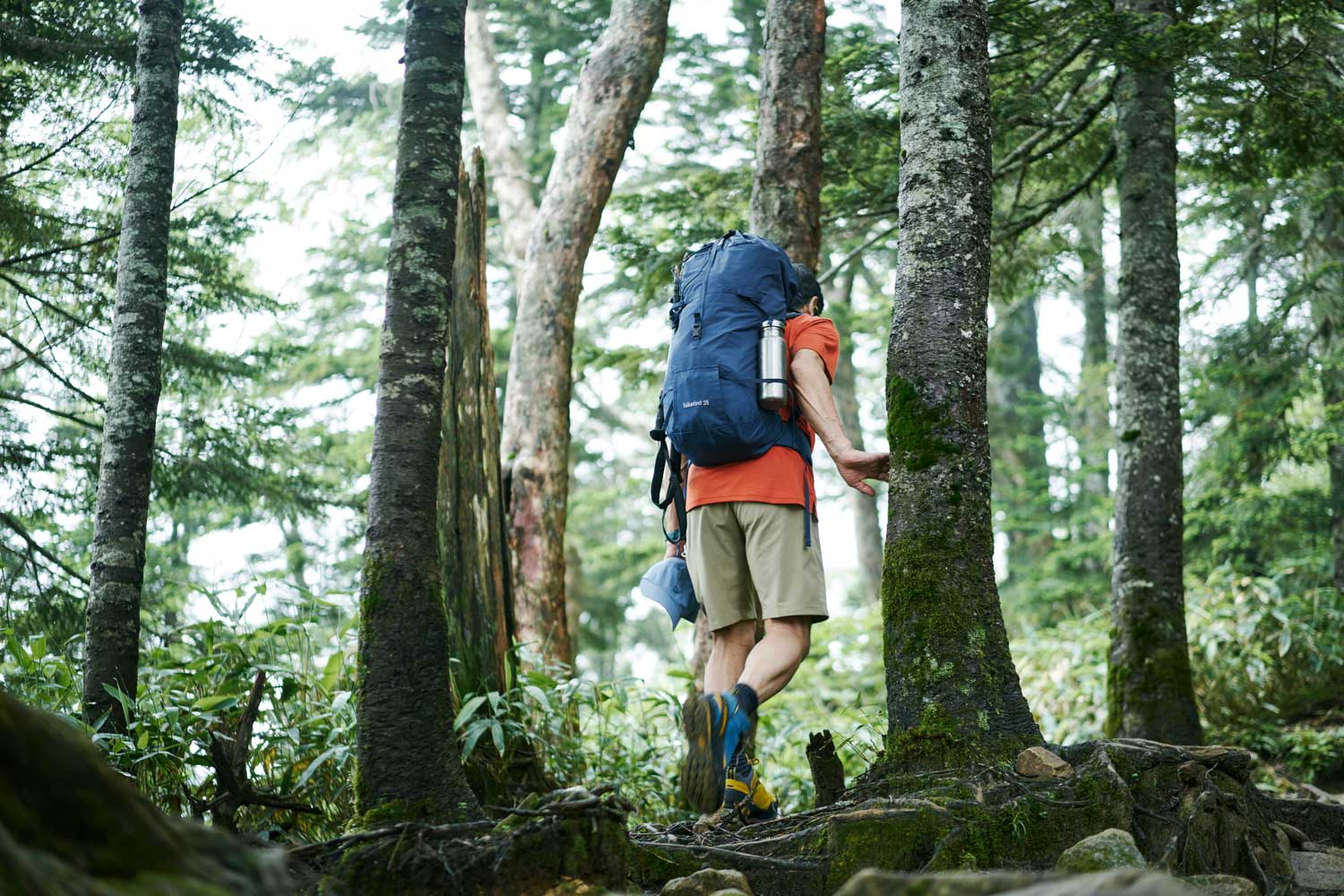 夏山で短パンは良くないと言われていますが、僕は関係なく短パン派です。転んだときのリスクや日焼けの問題は、個人の責任だと思いますので。やはり、暑いのに無理して長いパンツを穿く必要はないと思います。熱中症も心配ですしね。なので、夏山のアプローチ、とくにムシムシした樹林帯などは短パンが快適。そこは使い分けたほうがいいと思いますね。