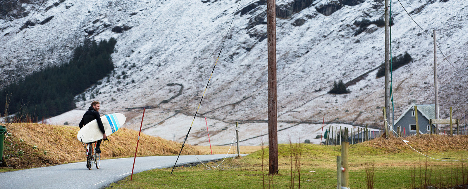 大自然、特にノルウェーの野生の風景や気候は、常にNORRØNA製品のインスピレーションの最大の源となっている。そして、自然は最高の会議室でもある。今回はノルウェー西海岸の壮大かつ未知の地で、冷たい海のサーフィンとスキーやスノーボードを通してその魅力を伝えていくことにする。