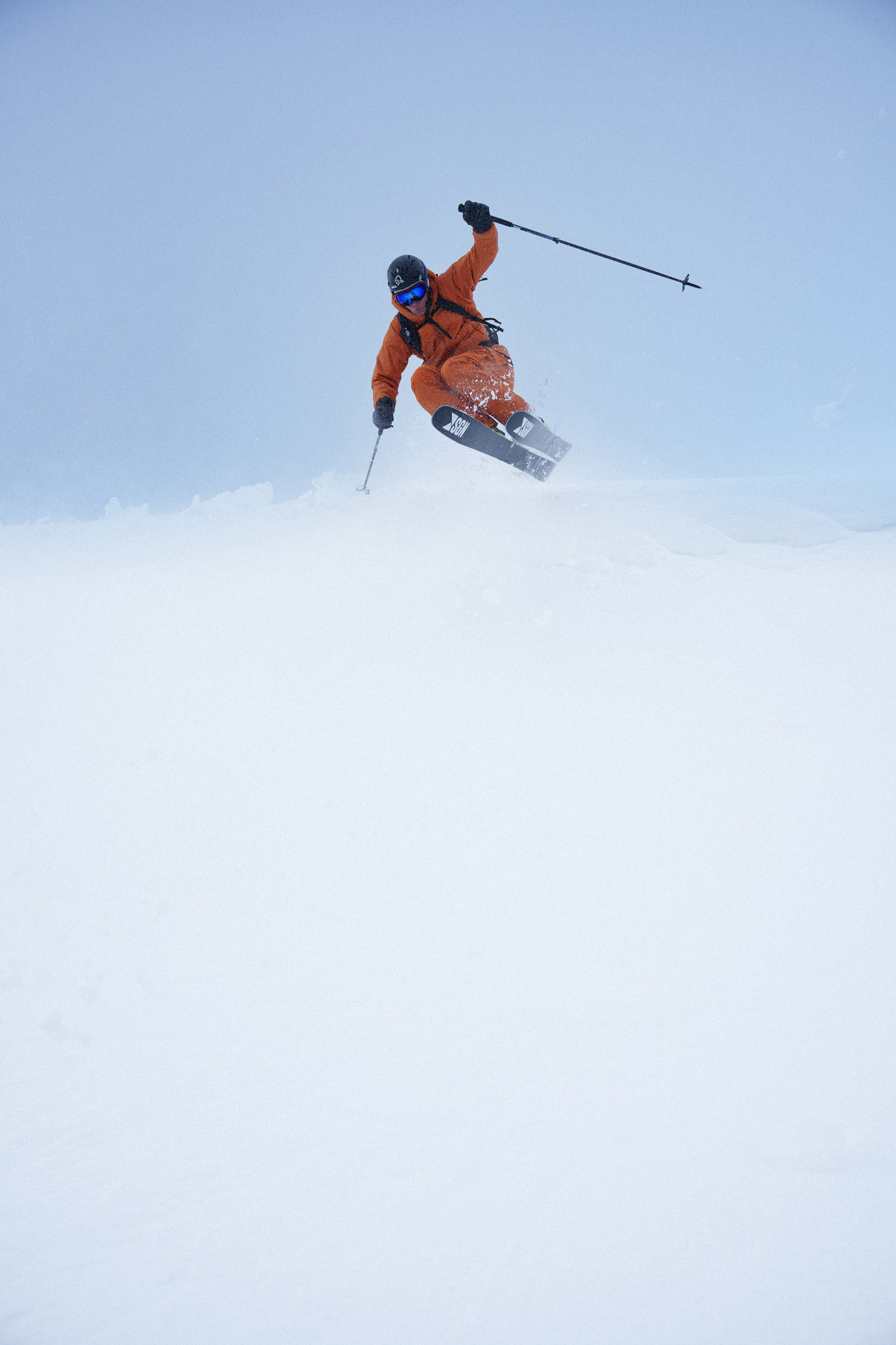 サロペットのデザインは、ここモーレでのビッグマウンテン・アドベンチャーにぴったりです。とにかく軽量で、透湿性に優れ、どんな状況にも対応できるので、ひと冬を通じで信頼できます。あらゆる天候で機能するGORE-TEXの保護性能とスマートなベンチレーションシステムを備えていて、私が計画するスプリッドボード・ミッションのための完璧な相棒です