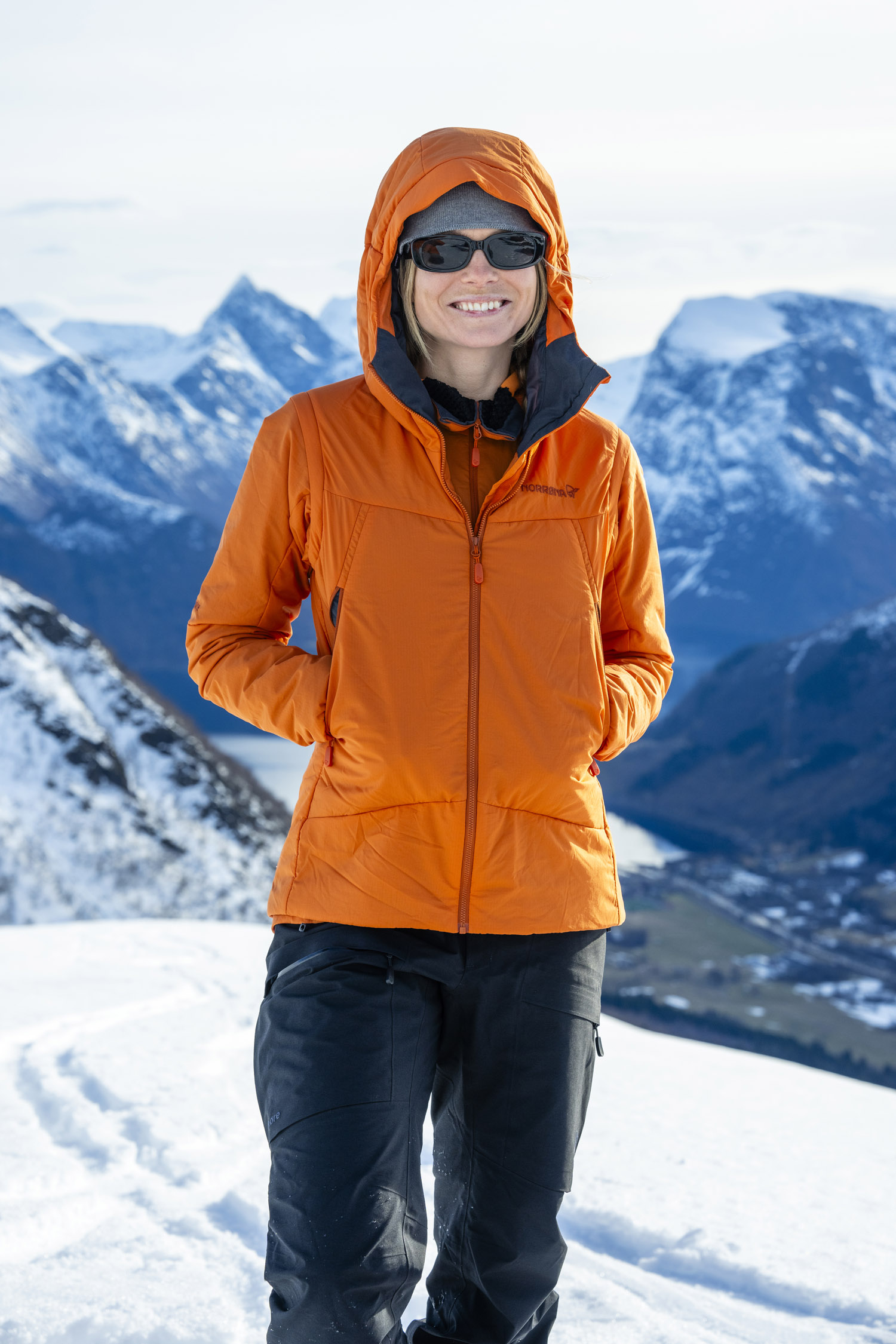 製品はノローナ・アンバサダーによって、数百時間にも及ぶテストが行われています。その多くは、インスピレーションの源となった地域のモーレでフィールドテストが繰り返され、完成へと至りました。このモーレに居を構え、コレクション開発に深く関わったプロのフリーライドスキーヤーであるアスビョルン・エッゲボ・ネスは、「møre thermo60 aero200 Jacket」について次のように説明しています。