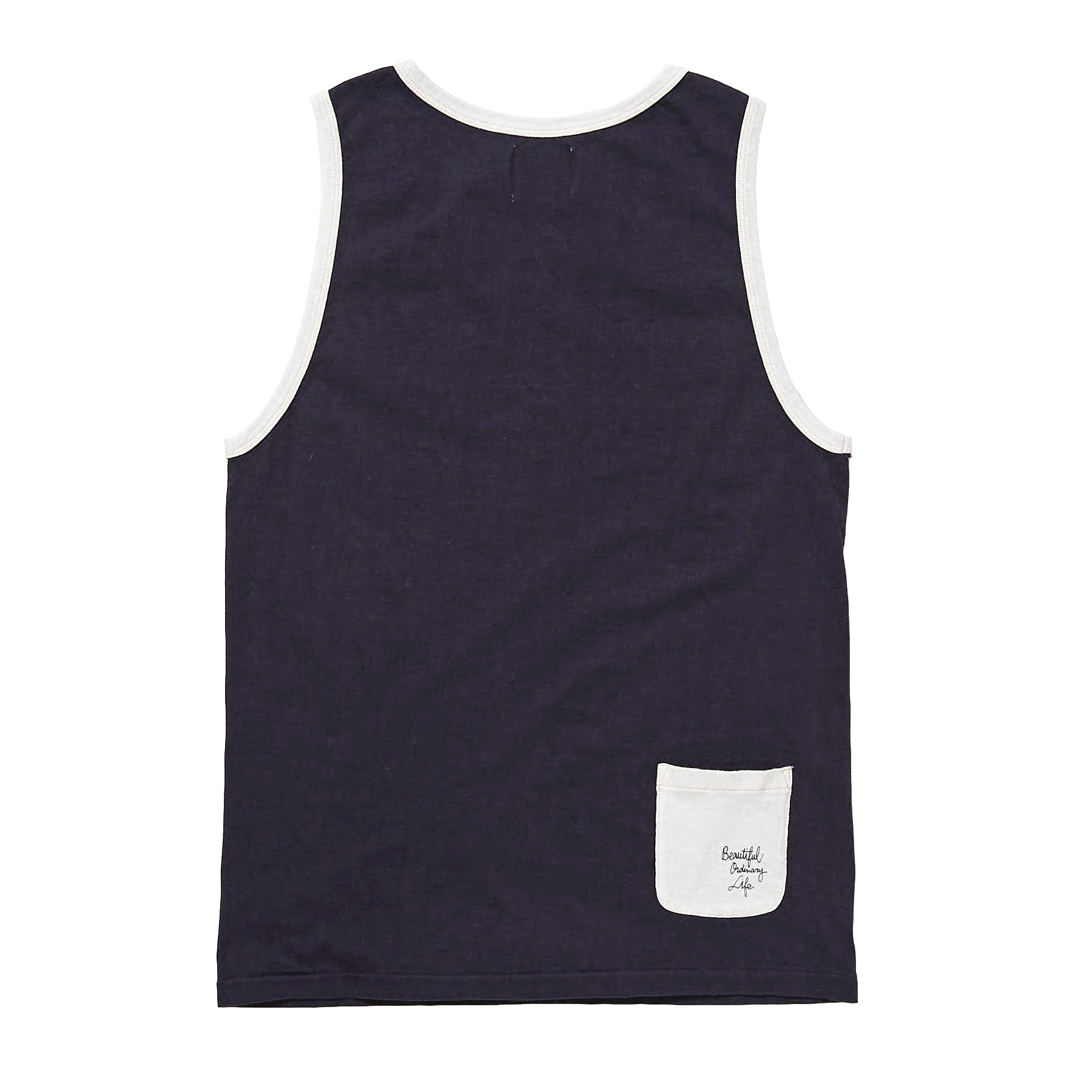 Palm Graphics × Permanent Union Summer Series. 「Tank top」 夏の必需アイテムタンクトップ。かっこよく着る為に体を鍛えよう。まだ間に合うね。タンクトップは素肌に着用する事が前提。丸胴による縫製で生地による不快感を軽減し、吊り編み機で手編みのように編み立てられた天竺生地は包み込むような感覚を覚えます。ポケットはアクセントに後ろにさりげなく。1枚でも、重ね着でも。