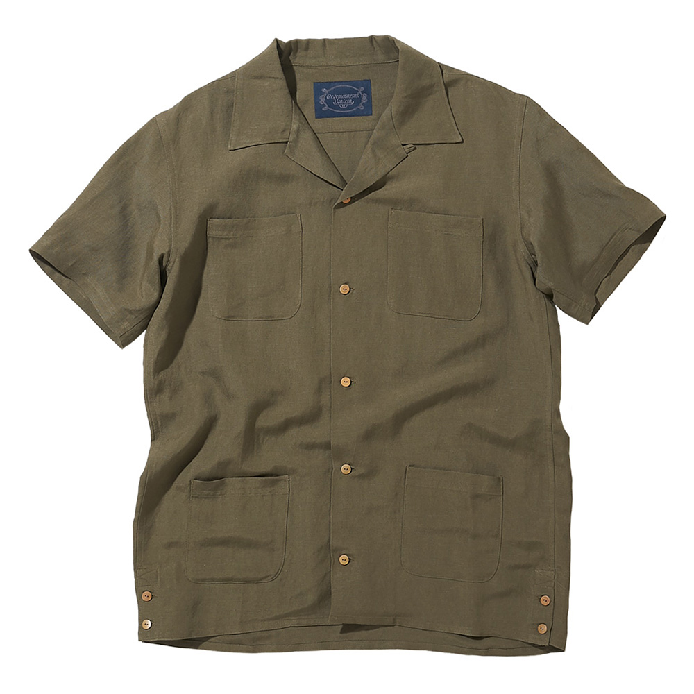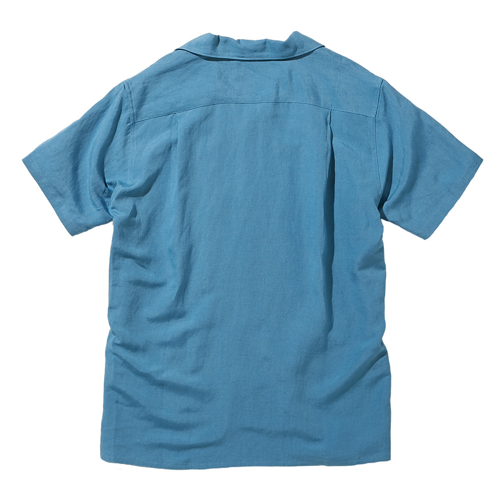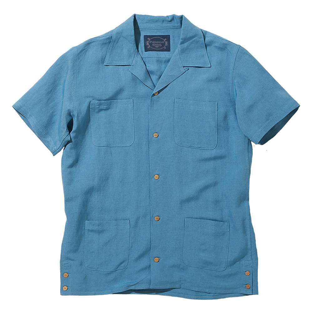 オーソドックスな開襟シャツ。夏らしい素材も特徴です。