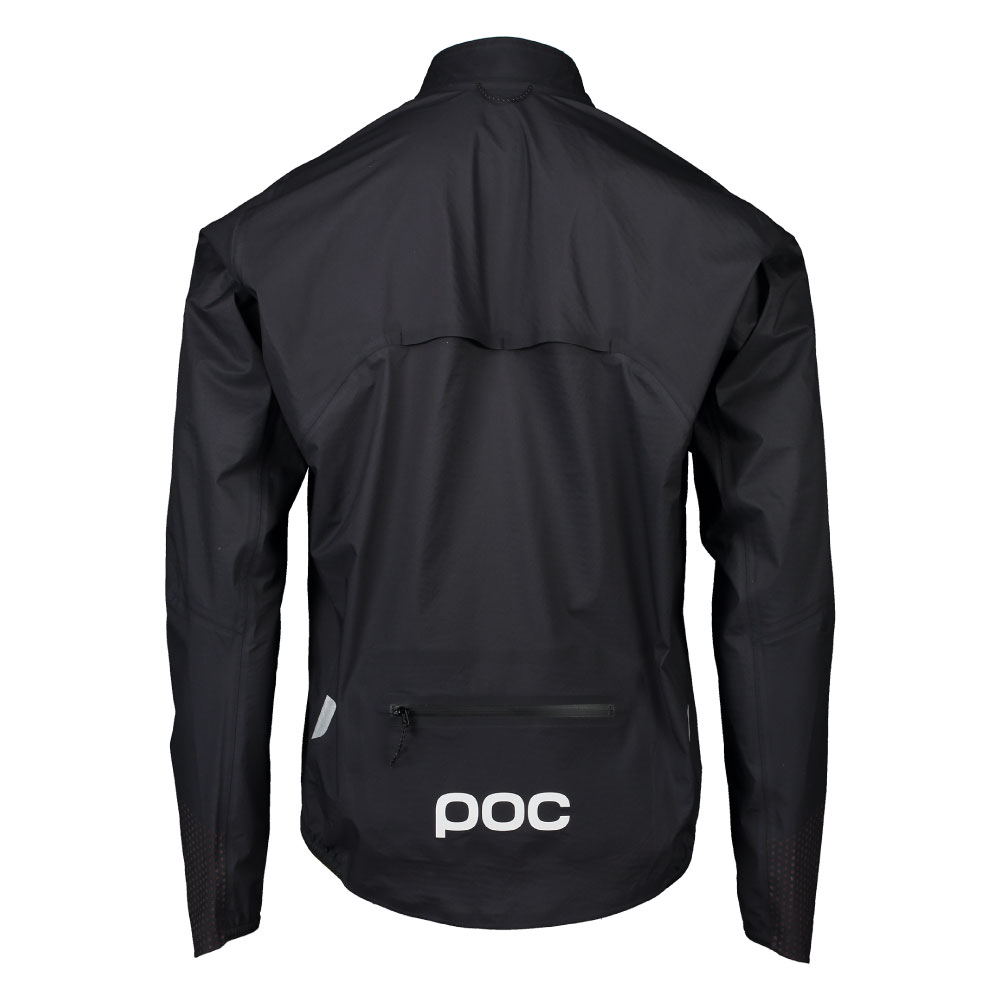 軽量で通気性が高い完全防水のロードサイクリング用レインジャケットです。ロードサイクリングに最適なデザインになっており、フロント部分は短くなっています。両肩のヨーク部分がバイアスになっているので、ストレッチがありフィット感を高めています。軽量ですが、耐水圧20,000mmの3レイヤーを採用しており、縫い目もシームレスです。透湿性も高く、20 000 gr/sqm/24 hrあります。体温調節をしやすくするために、背部および脇の下は換気用のベンチレーションがあり、視認性を高めるために全てのポケットにリフレクター機能を備えています。袖の開口部には反射プリントを施したPOCロゴを配しています。裾と袖口は伸縮性があります。