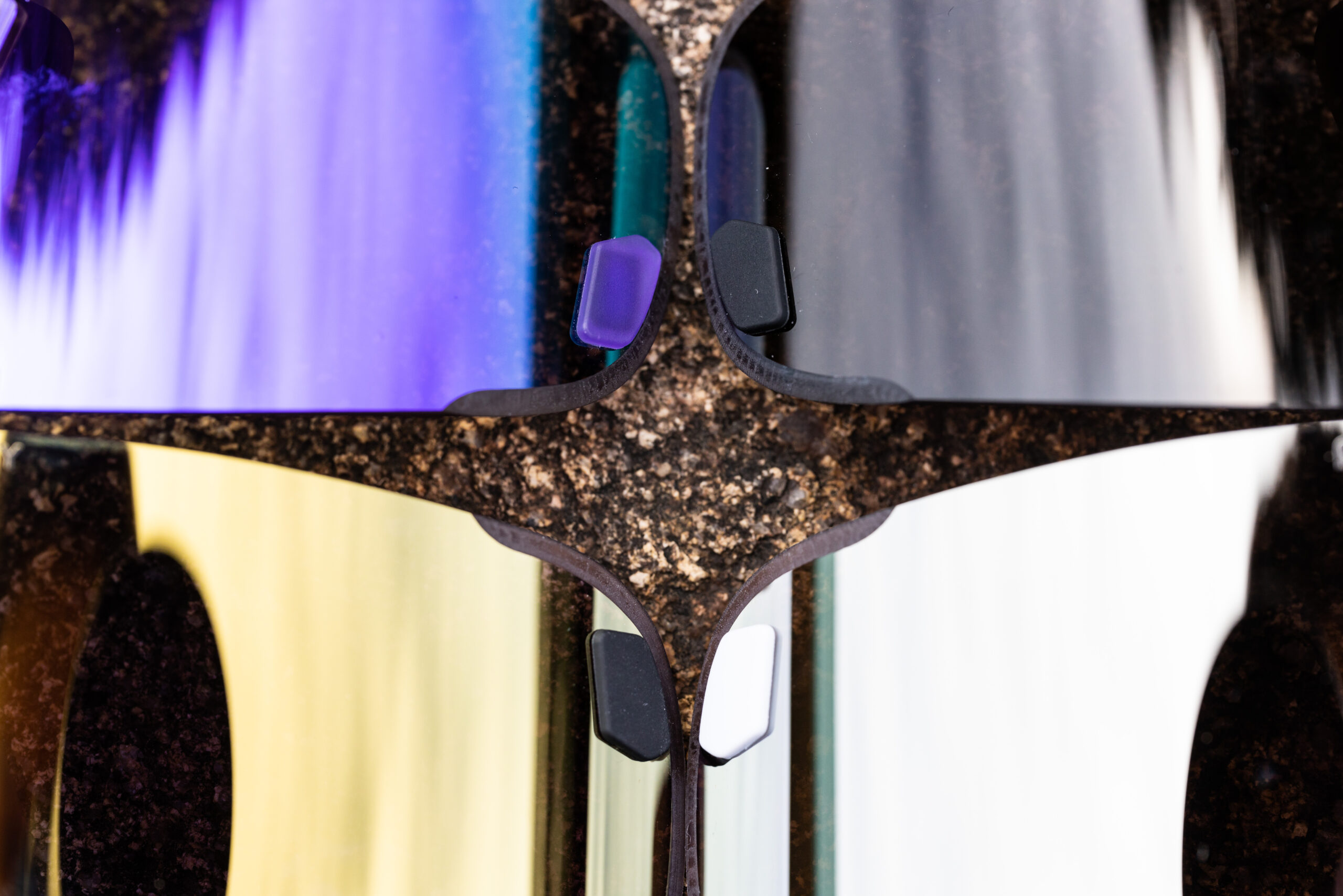 ラインナップは7色のフレームカラーと4色のレンズカラーの組み合わせ(全てのカラーにツァイス製のクリアレンズが付属する)。