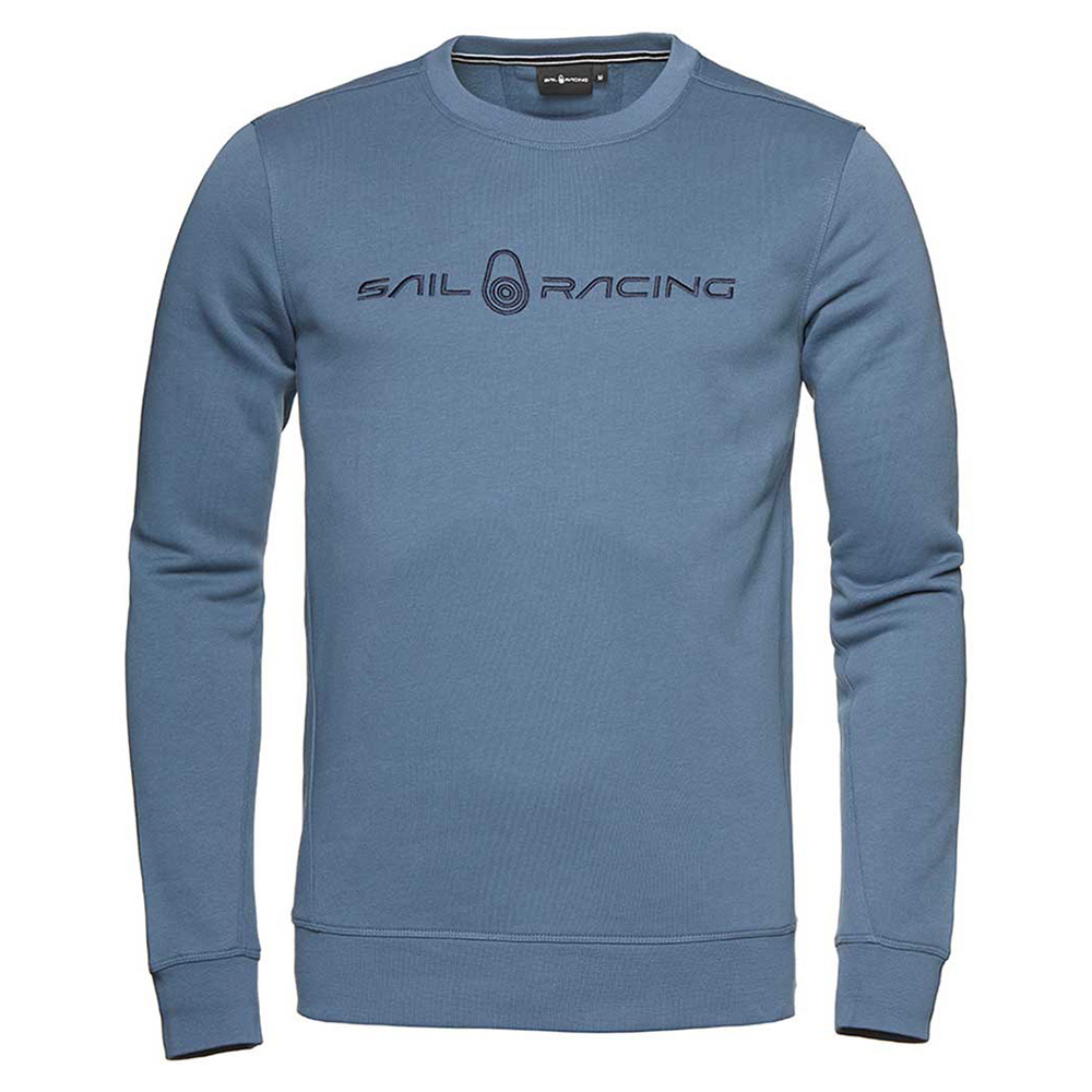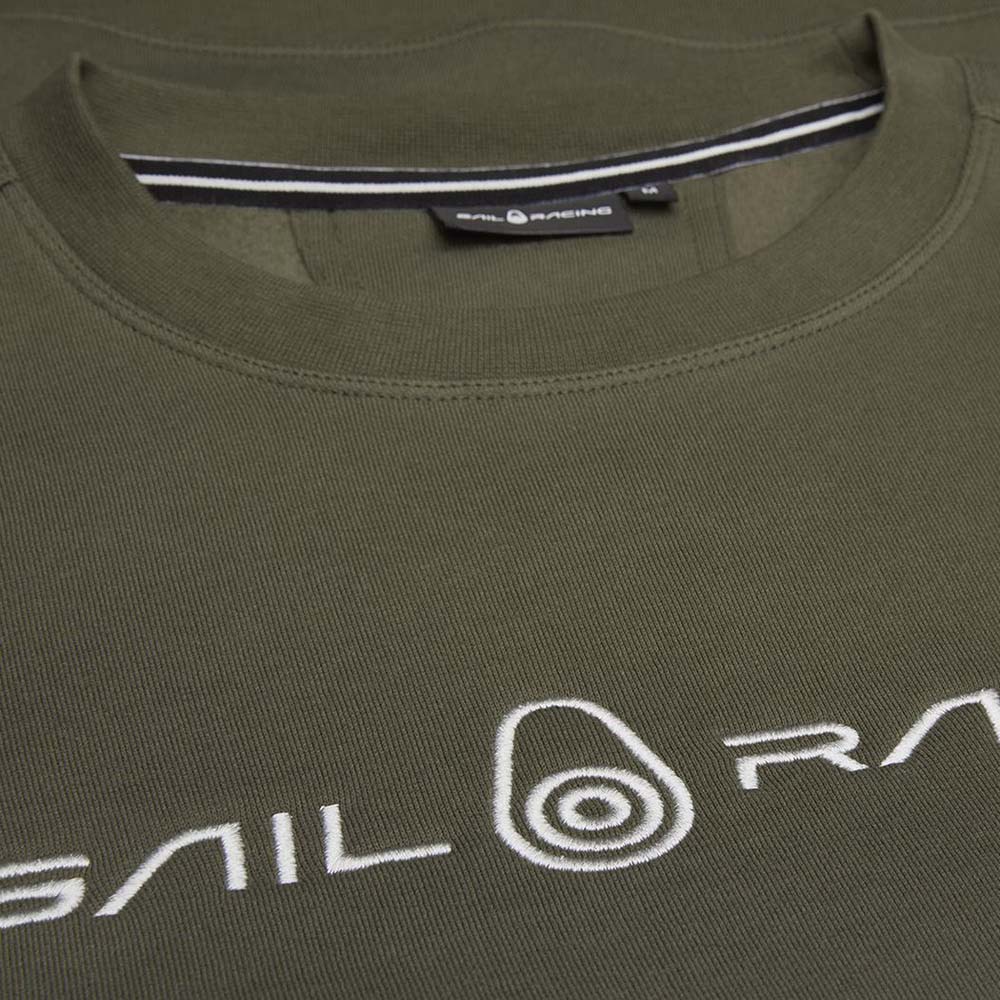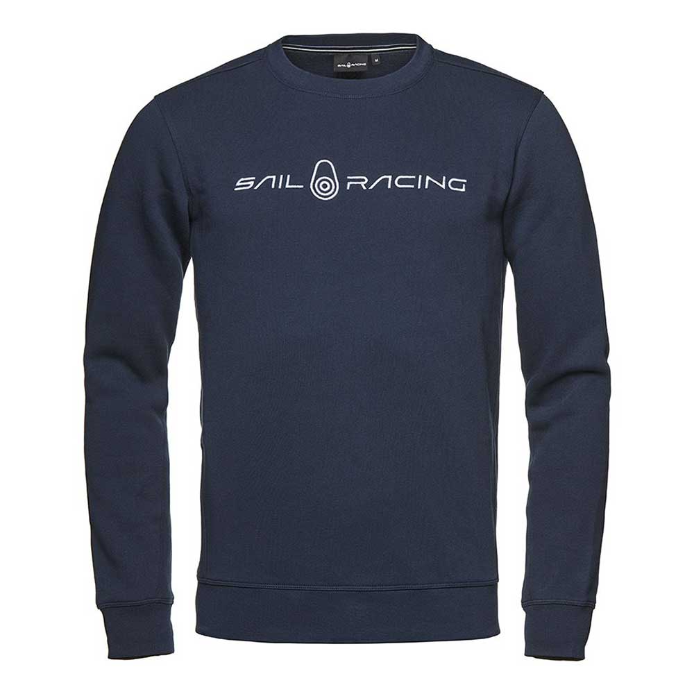 コットンとポリエステル混紡の薄手のセーター。胸部にセイルレーシング刺繍、バックヨークにブロックロゴ刺繍。首、裾、袖口はリブ編み。