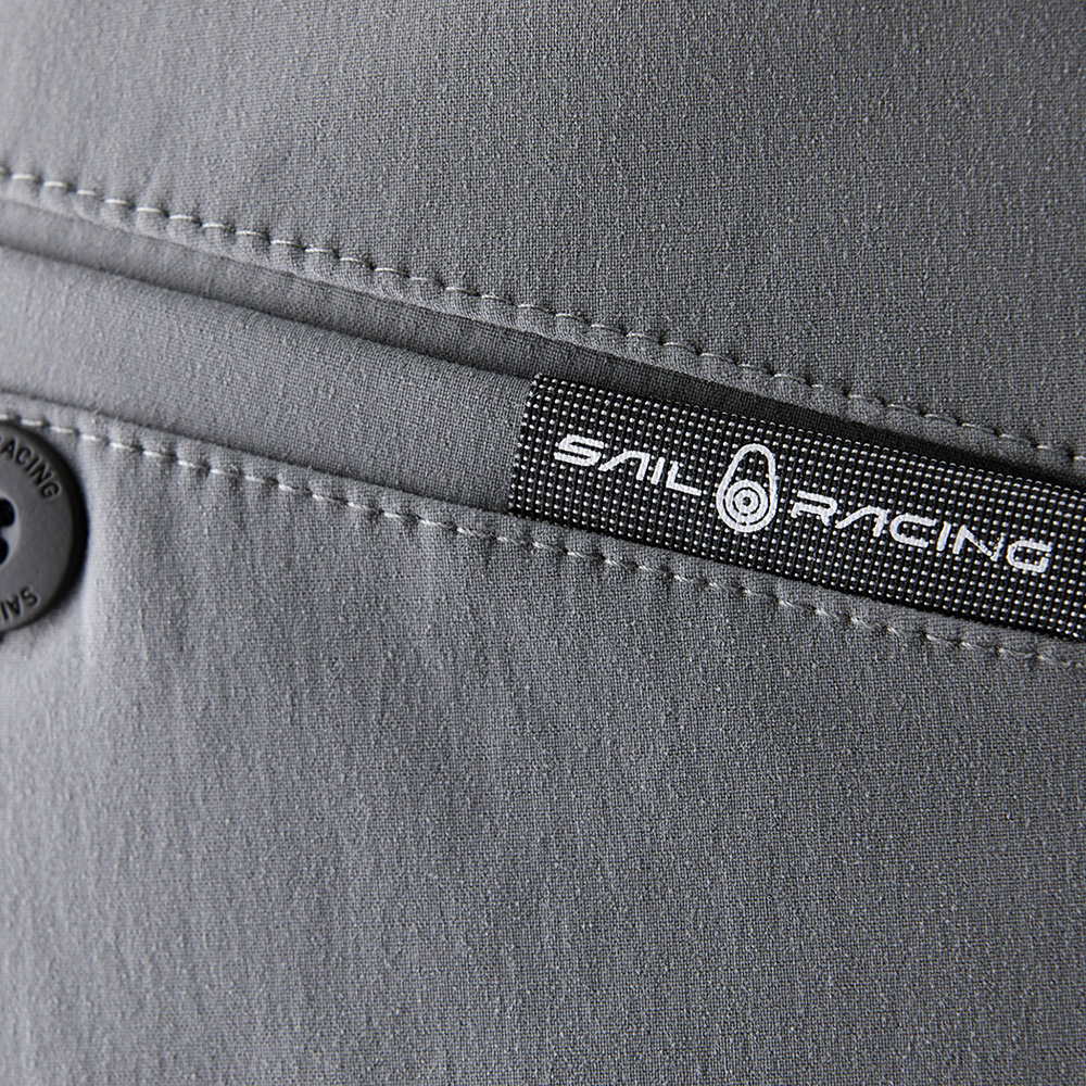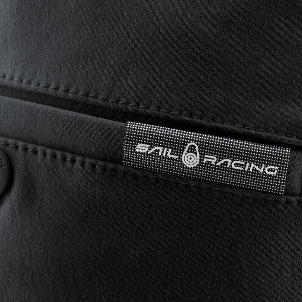 ナイロンとスパンデックスのミックスで作られています。ベルトループとウエストポケット にジッパーがあります。 バックポケットにはSail Racingの織ラベルがあります。