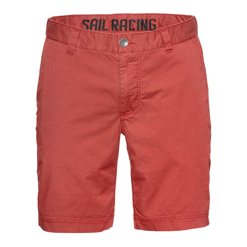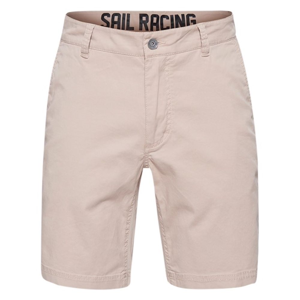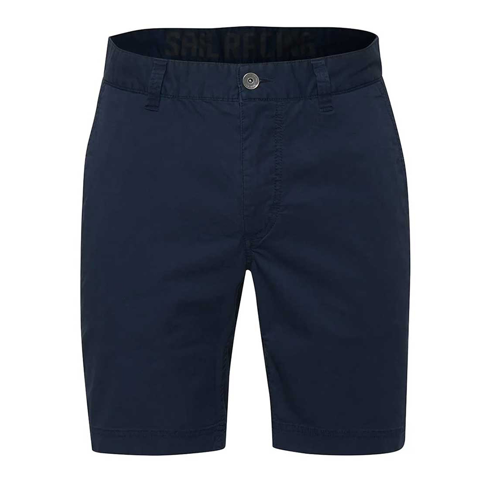 コットン 97%、スパンデックス 3% のヘルムスマンチノショーツ。バックポケットとベルトループ、ウエストバンドの内側に SailRacing のロゴプリントを配しています。