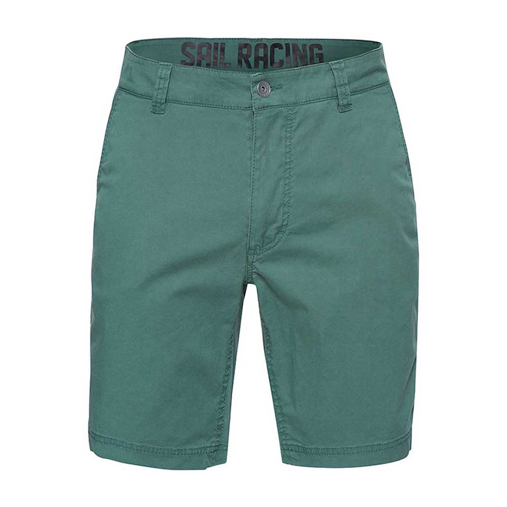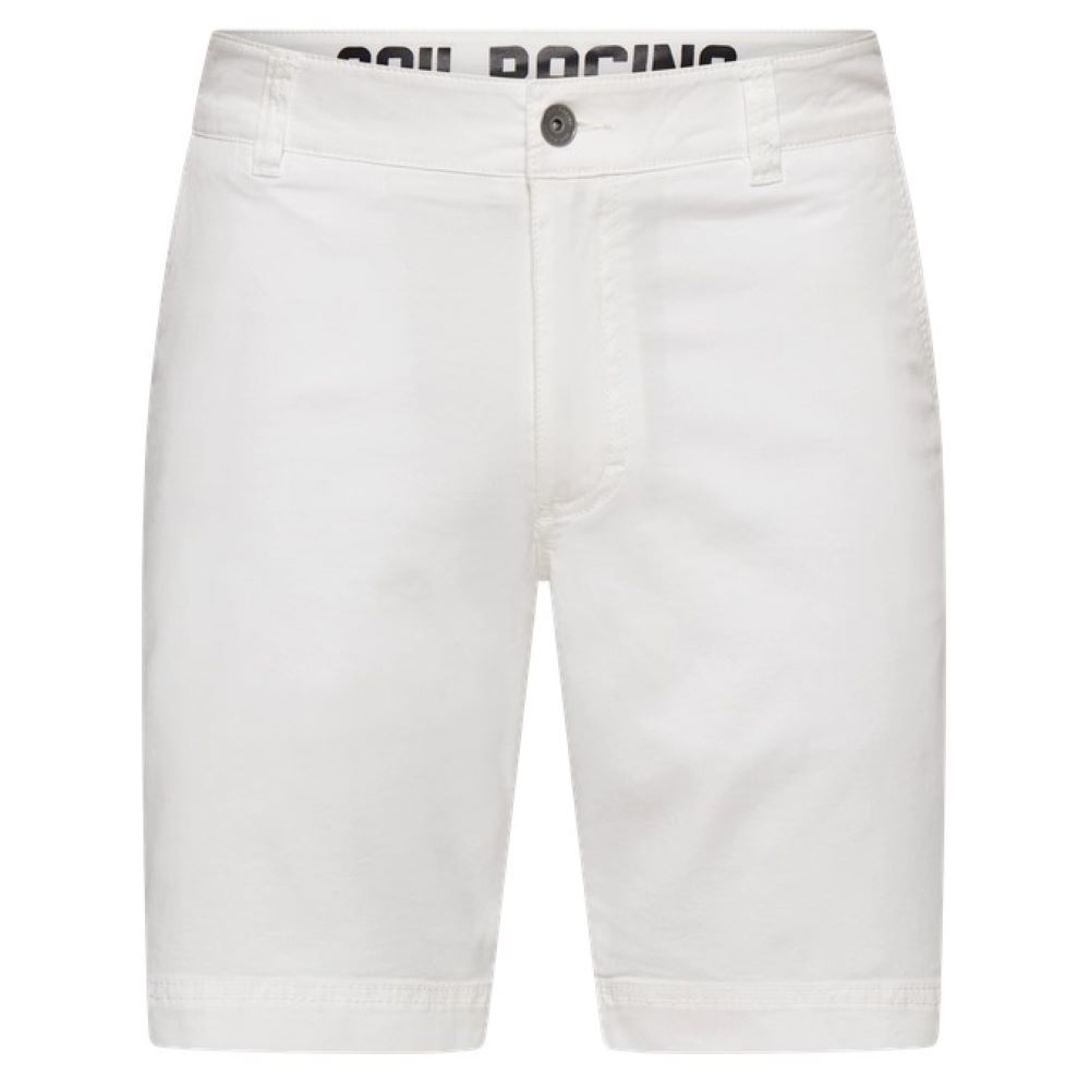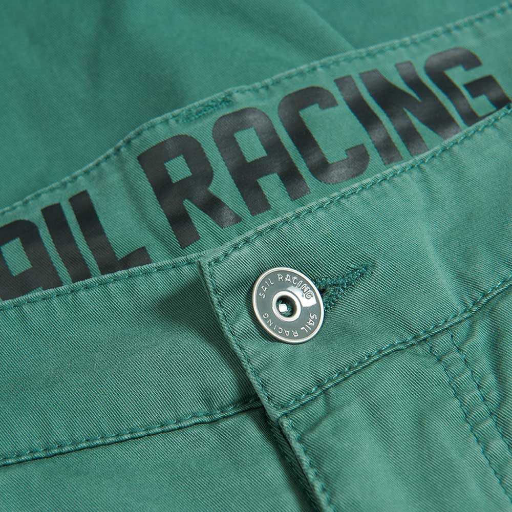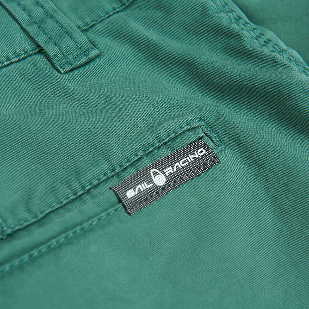 コットン 97%、スパンデックス 3% のヘルムスマンチノショーツ。バックポケットとベルトループ、ウエストバンドの内側に SailRacing のロゴプリントを配しています。