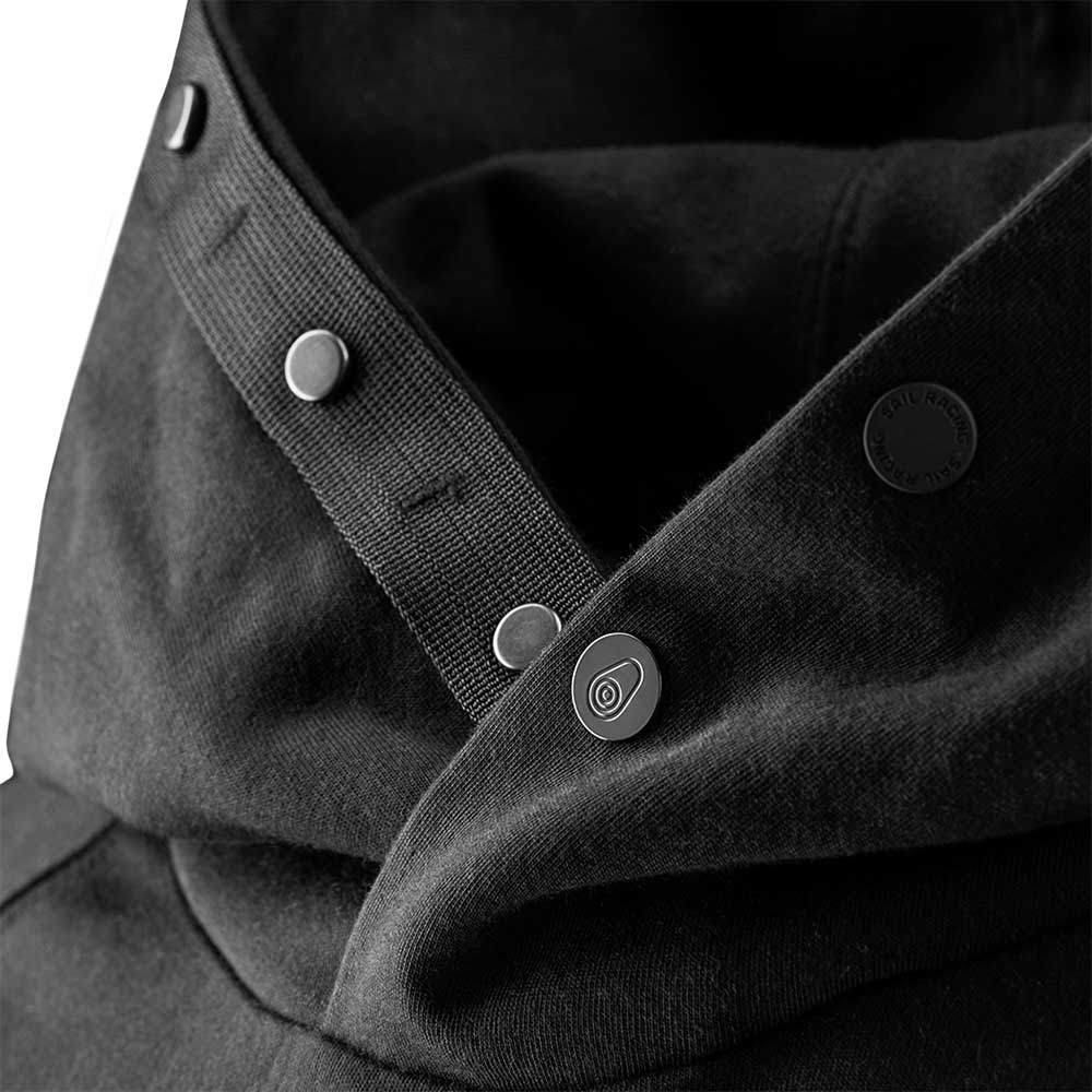 ポリエステルメッシュコーティングを施したDWR処理コットンで作られたフード。 サイドパネル、裾、袖口にリブ編みの生地。 フロントにカンガルーポケット。 フードの縁にプレスボタンが付いた織りテープ。 フロントポケットの上のSailRacingシリコンラベルとフードの上部のブロックロゴ。