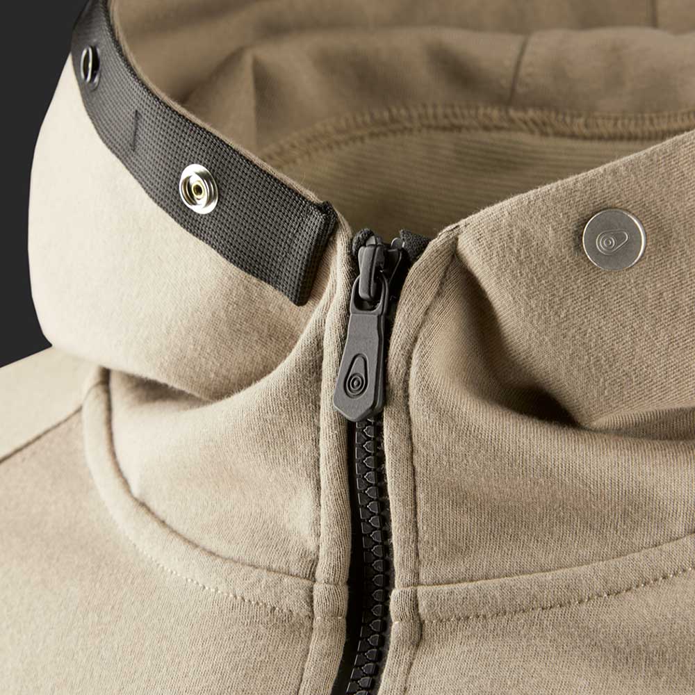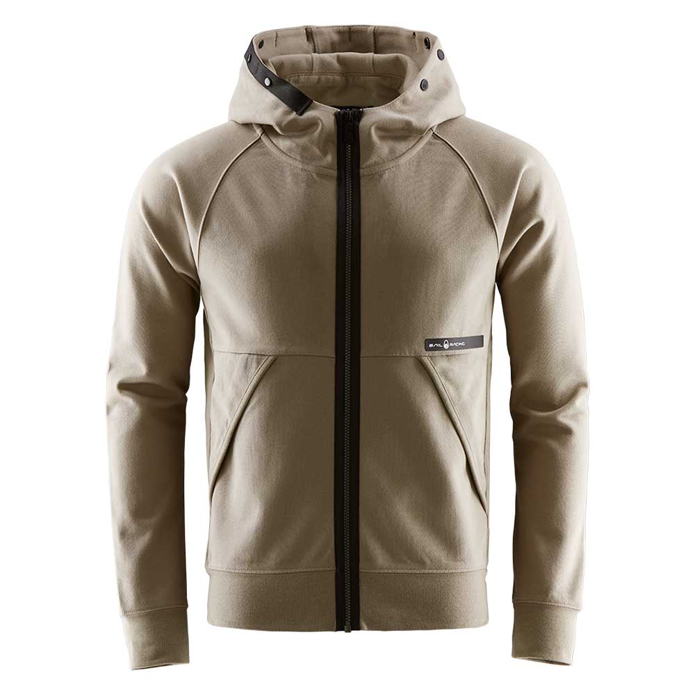 ポリエステルメッシュコーティングを施したDWR処理コットンで作られたジップフード。 サイドパネル、裾、袖口にリブ編みの生地。 フロントにジッパーとオープンポケット。 フードの縁にプレスボタンが付いた織りテープ。 フロントポケットの上のSailRacingシリコンラベルとフードの上部のブロックロゴ。