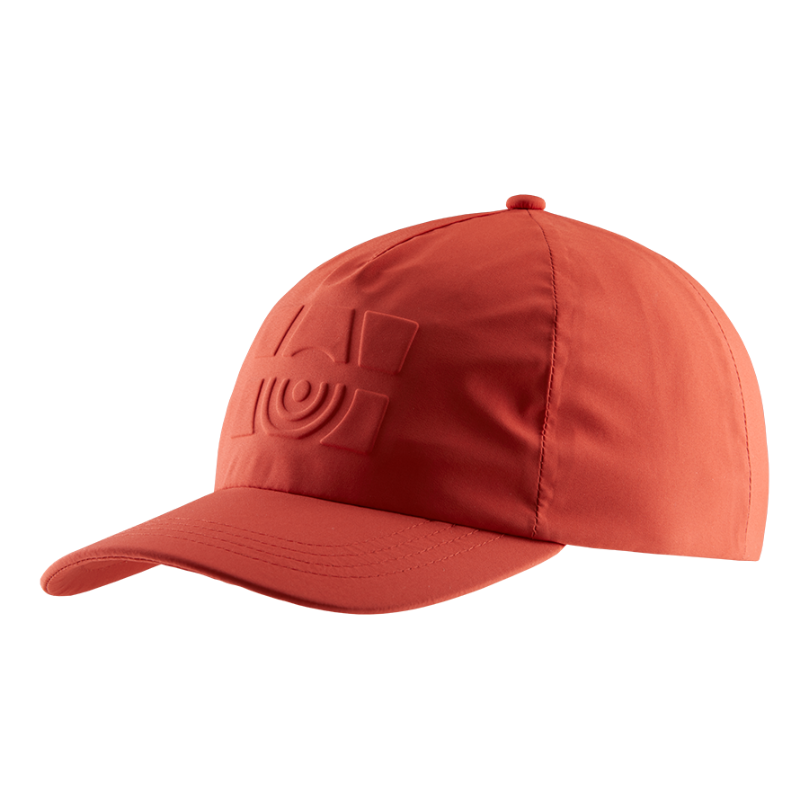 通気性の高いE.Dyeポリエステル生地を使用したブロックロゴキャップ。サイズ調整可能なアジャスタブルバックル。