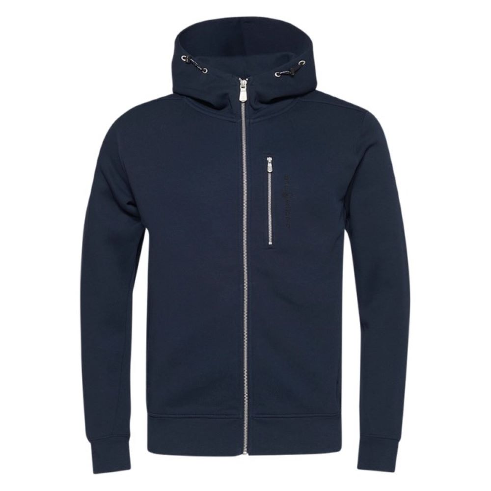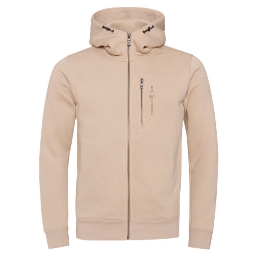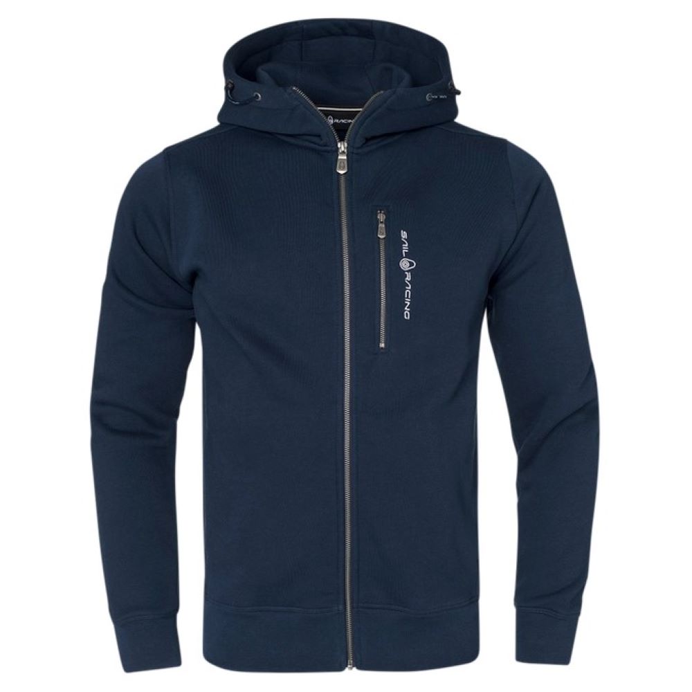 コットンとポリエステル混紡の定番ジップフード。胸ポケットにSail Racingロゴ刺繍、フード上部にブロック刺繍。裾と袖口のウエストポケットとリブ。調節可能なフード。