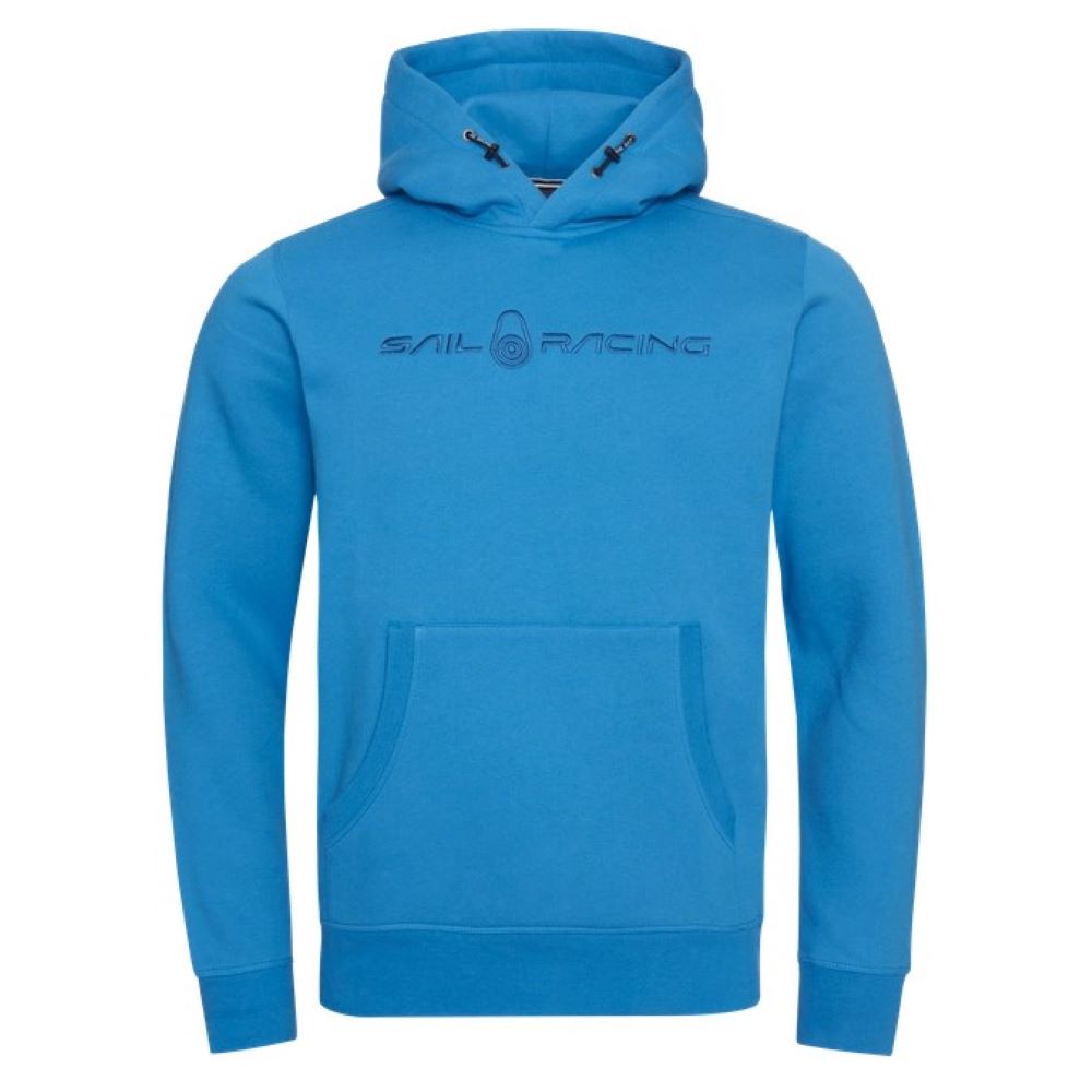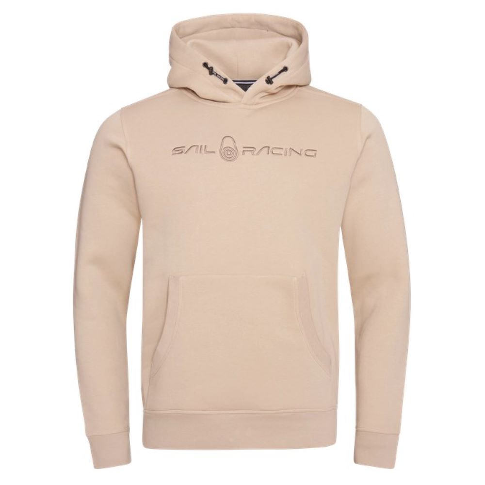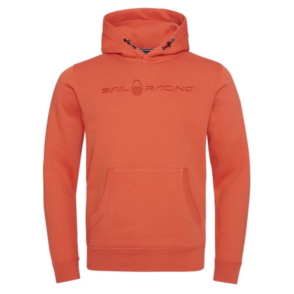 コットンとポリエステル混紡で作られています。ウエストポケットあり。袖口、裾口はリブ仕上げ。調整可能なフード。胸とフード上部にロゴがあります。