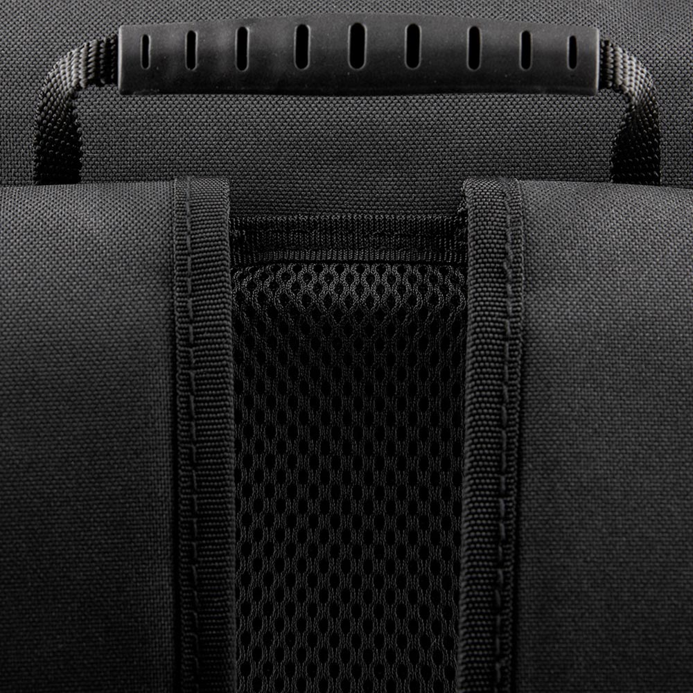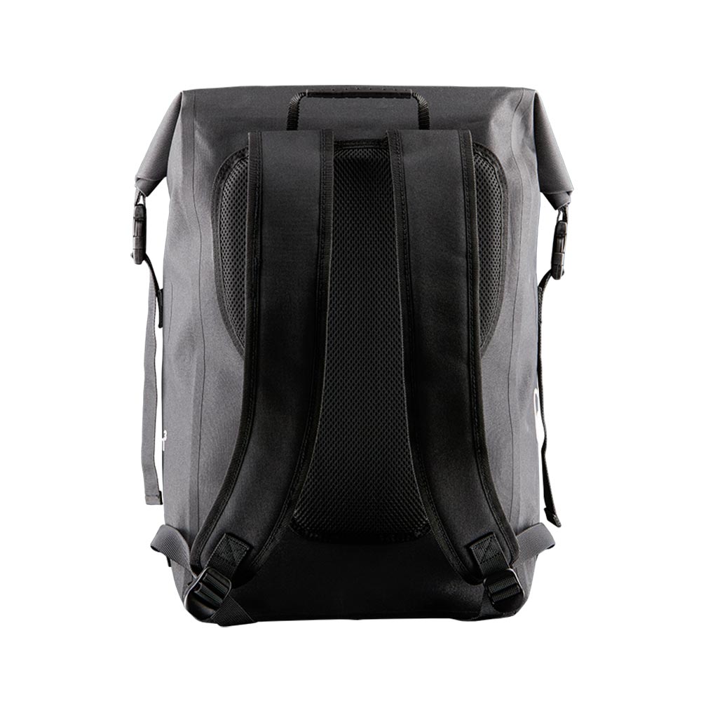25Lの防水素材バックパックです。快適に背負えるように背面にパッドが備わっています。荷室は大きな開口で両サイドのクリップで開閉します。ショルダーハーネスにもパッドが施され長さを調整できます。ラップトップホルダー、メッシュのインナーポケットあり。外側のジッパー付のポケット下にロゴが入ります。上部にハンドルあり。側面に『25dm3』のプリント。 幅: 31 cm 高さ: 68,5 cm 奥行: 14 cm