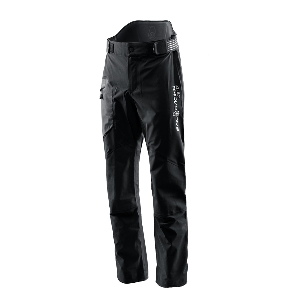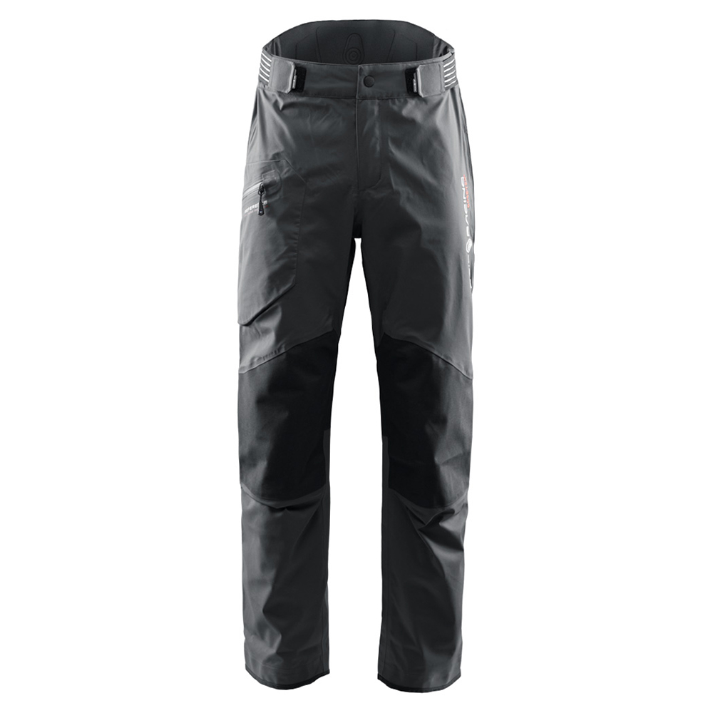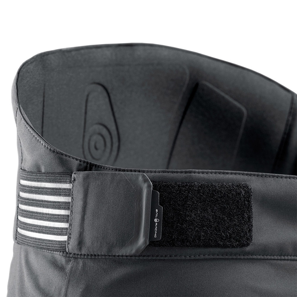 高い透湿性、防水、暴風加工の施されたGORE-TEX_3レイヤーストレッチ素材のパンツ。腰痛予防効果も期待できるメディカルテープのウエスト調整。型押しされたネオプーレン素材のハイバックに補強された膝と臀部。YKKアクアガードジッパー採用。右足にゆったりとしたポケット。足と後ろにSail Racingのロゴ。
