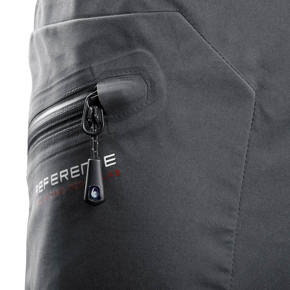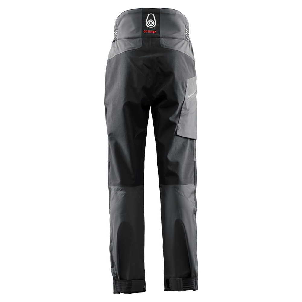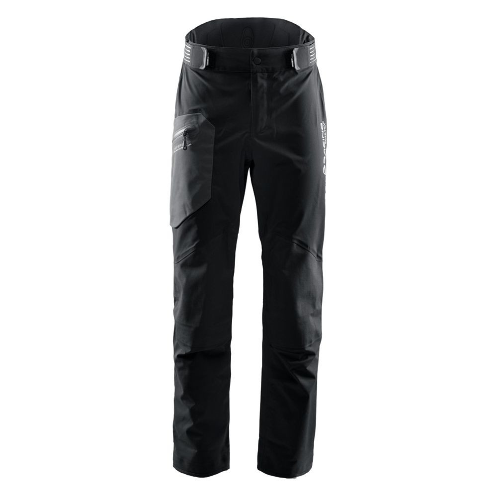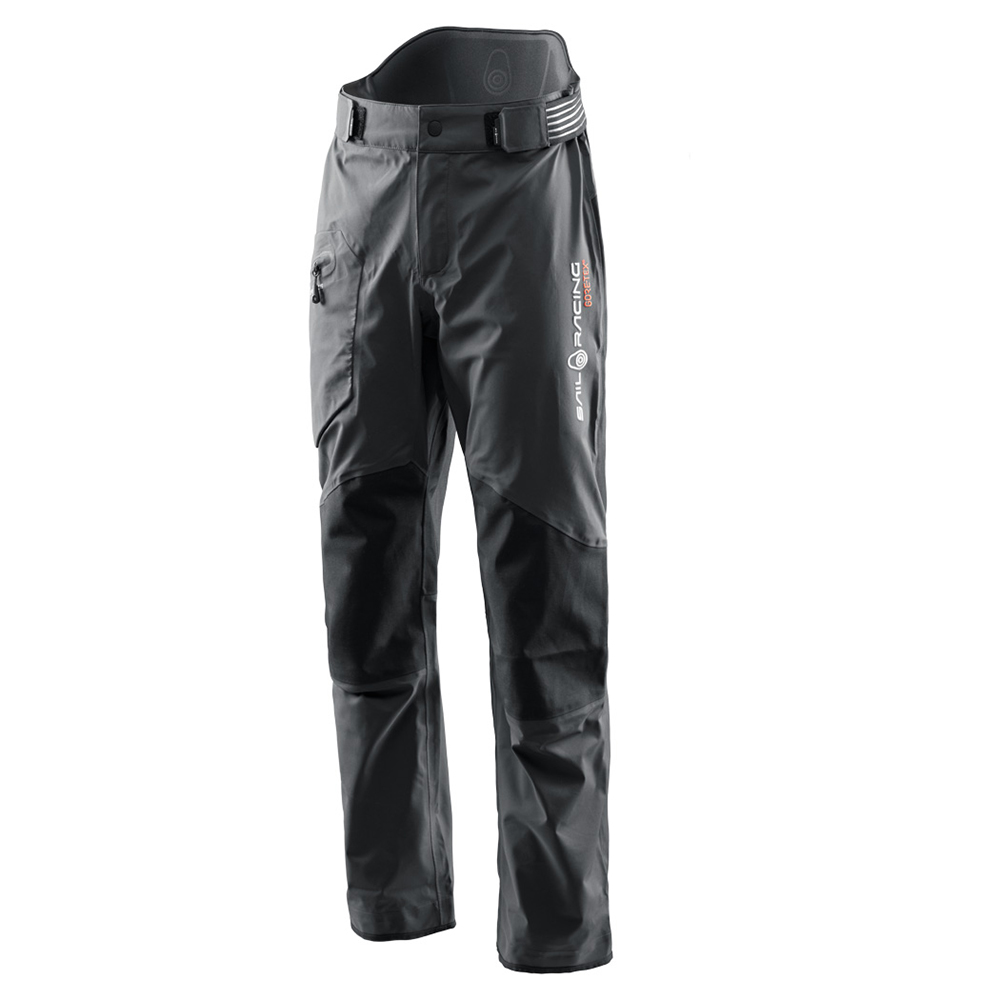 高い透湿性、防水、暴風加工の施されたGORE-TEX_3レイヤーストレッチ素材のパンツ。腰痛予防効果も期待できるメディカルテープのウエスト調整。型押しされたネオプーレン素材のハイバックに補強された膝と臀部。YKKアクアガードジッパー採用。右足にゆったりとしたポケット。足と後ろにSail Racingのロゴ。
