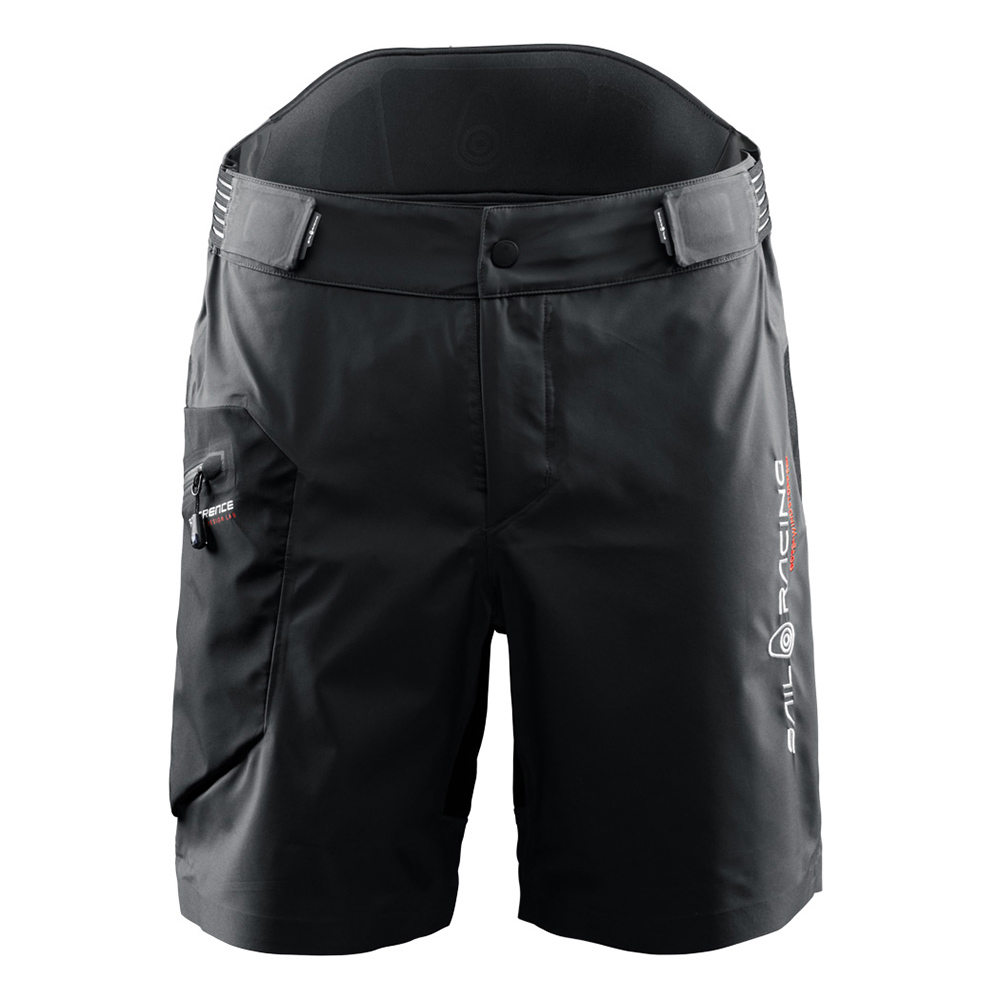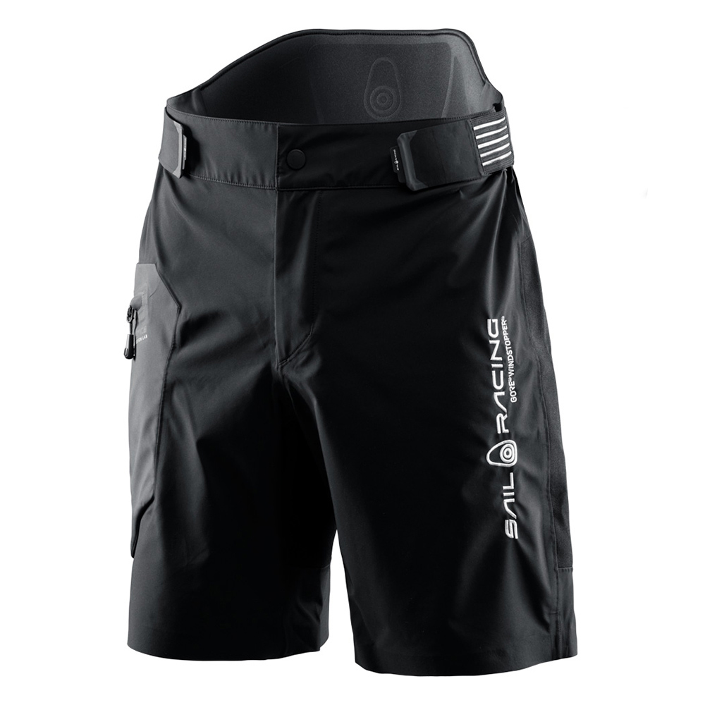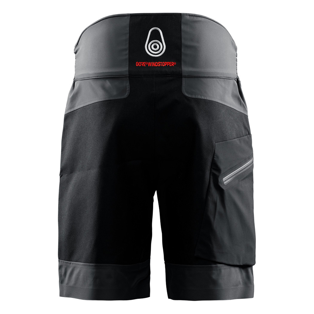 3レイヤーのGOREWINDSTOPPER_生地で作られたショートパンツ。高い防水性と軽量化を維持するためマイクロシームテープ使用。調整のためのメディカルテープとモールドされたネオプレンのバック。お尻の補強布。YKKの防水ジッパー。左足には広々としたポケットがあり、足と後ろにはSail Racingのロゴが入っています。