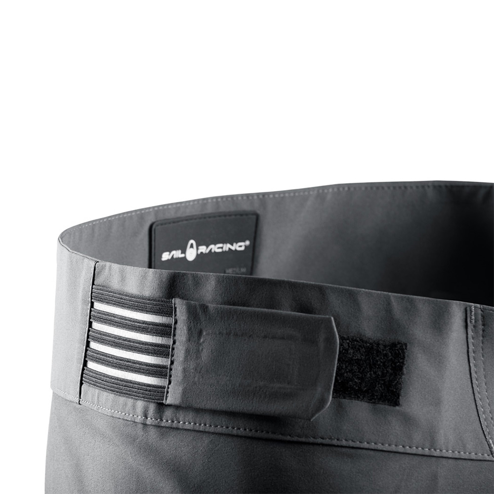 速乾性で高伸縮性のポリアミド生地を使用したショートパンツ。腰に調整用のメディカルテープ。ストリング。左側にポケット。足と腰にSail Racingのロゴ。