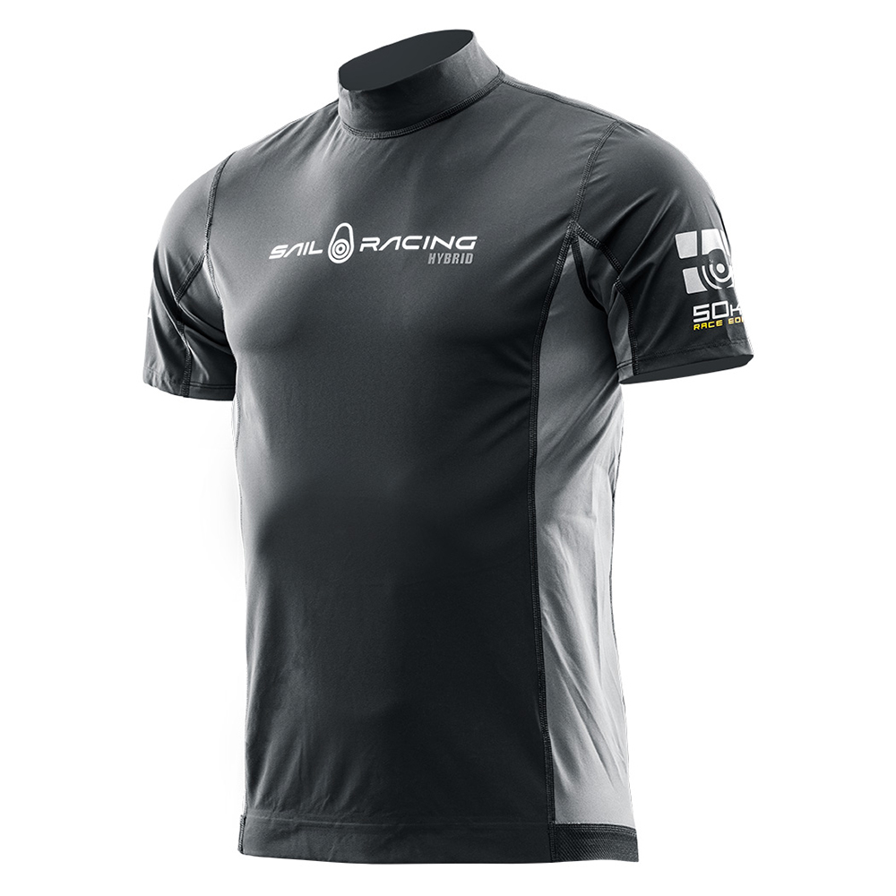 オルカ ハイブリッドショートスリーブはスーパーストレッチラミネート加工生地でつくられています。その生地には耐水耐風のDWR加工がされています。皮膚を守るラッシュガード生地が体側と袖に、通気のために背面はストレッチメッシュ。裾内側にすべり止め加工あり。高くフィット感のある襟は水や風の侵入を妨げます。両肩にリフレクタープリントあり。